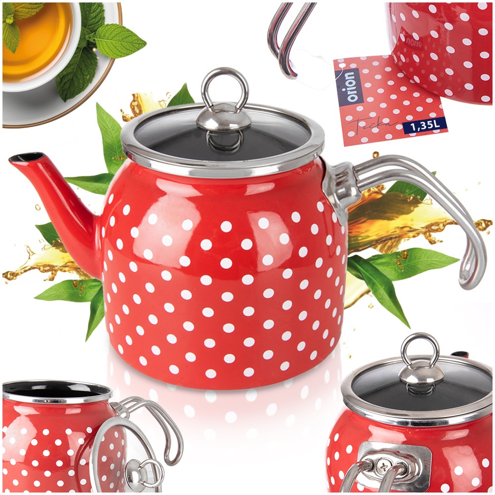 Czajnik emaliowany na gaz czerwony w kropki TECKA 1.1L ORION 113512