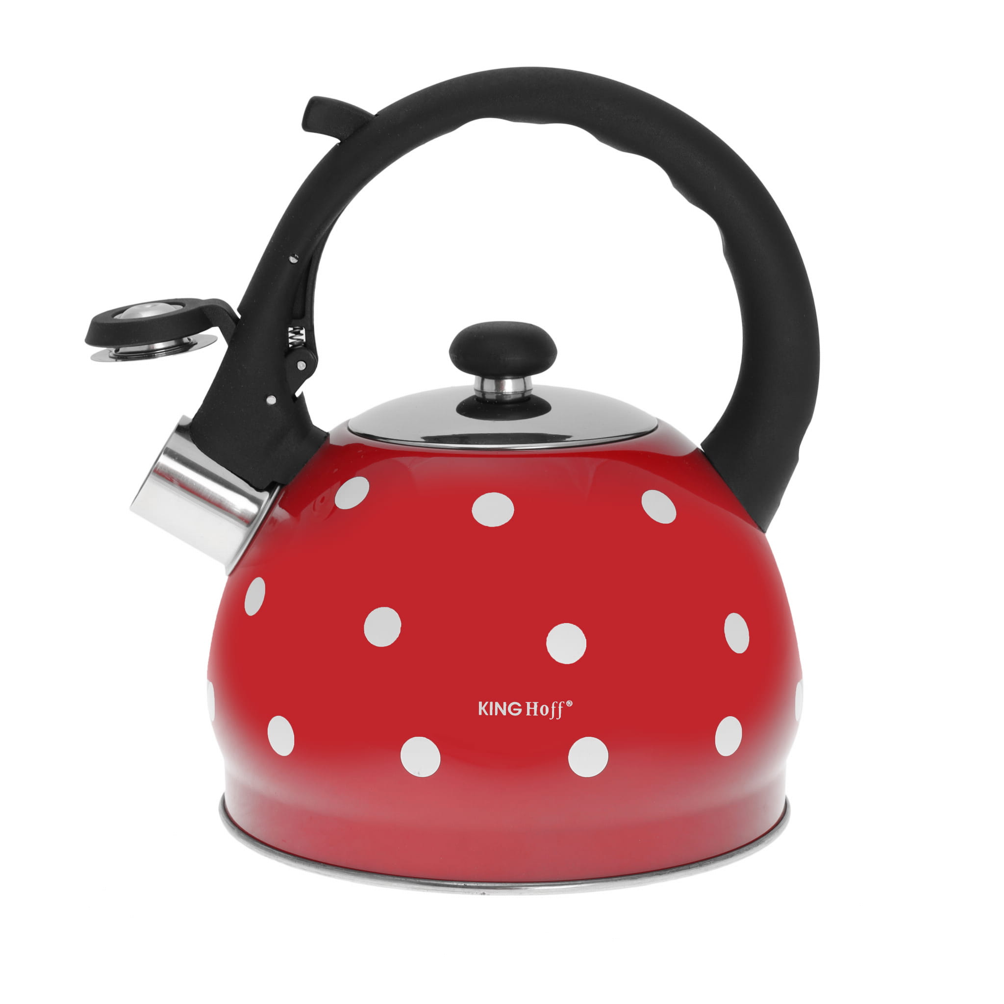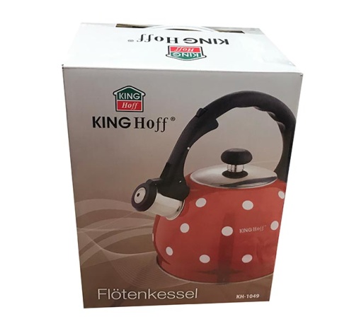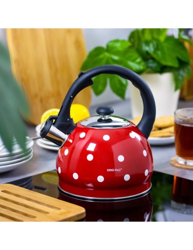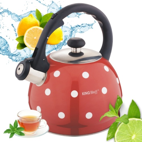 Czajnik 2.0L z gwizdkiem KINGHOFF wykonany z wysokiej jakości stali nierdzewnej pokrytej emalią. Można go stosować na wszystkich rodzajach kuchenek, także na kuchenkach indukcyjnych. Gwizdek zintegrowany w rączce. Pokrywka z polerowanej stali nierdzewnej. Ciekawy wzór w groszki.