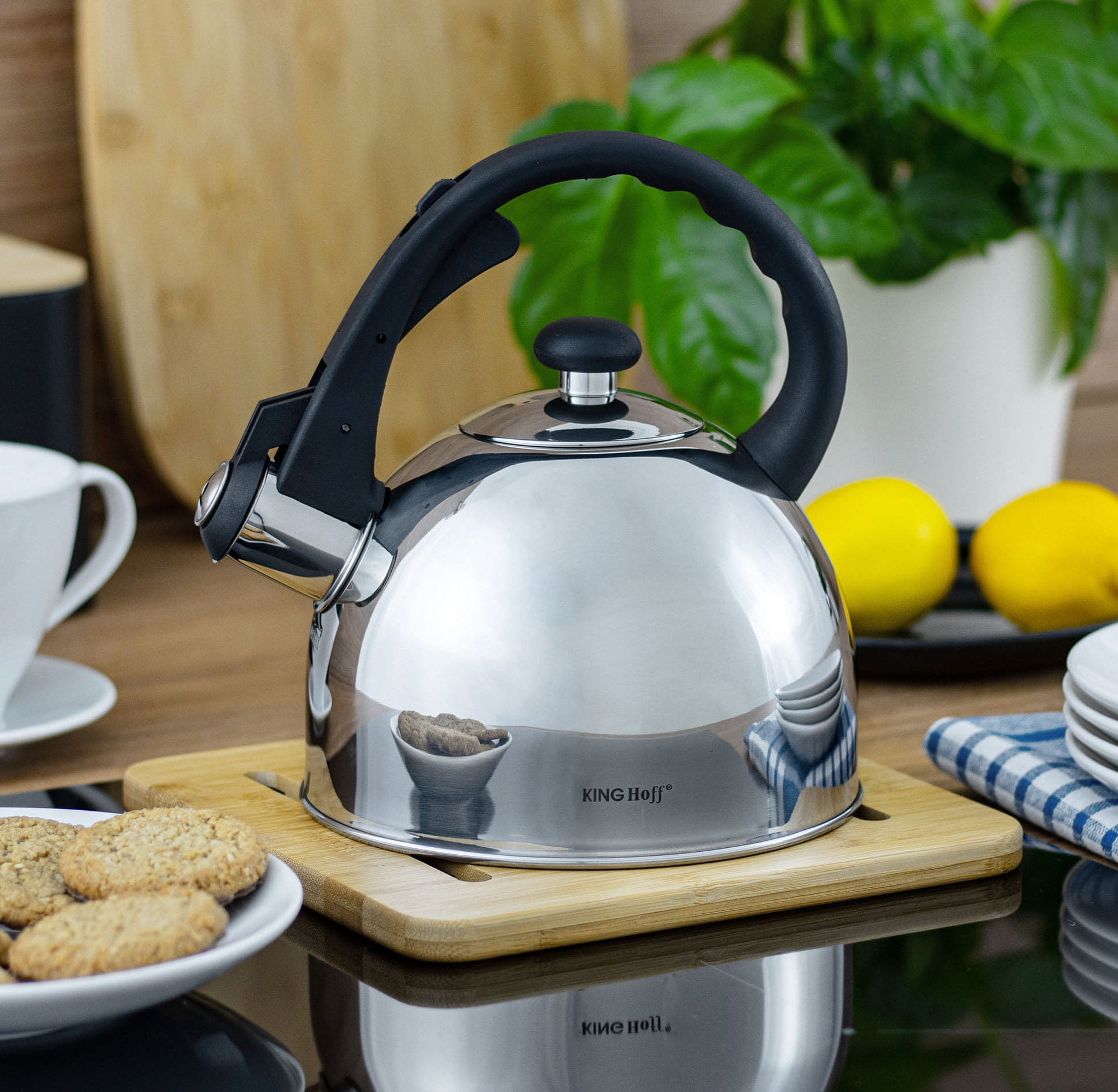 Czajnik stalowy 1.5L KINGHOFF. Wykonany ze stali nierdzewnej. Błyszczący.