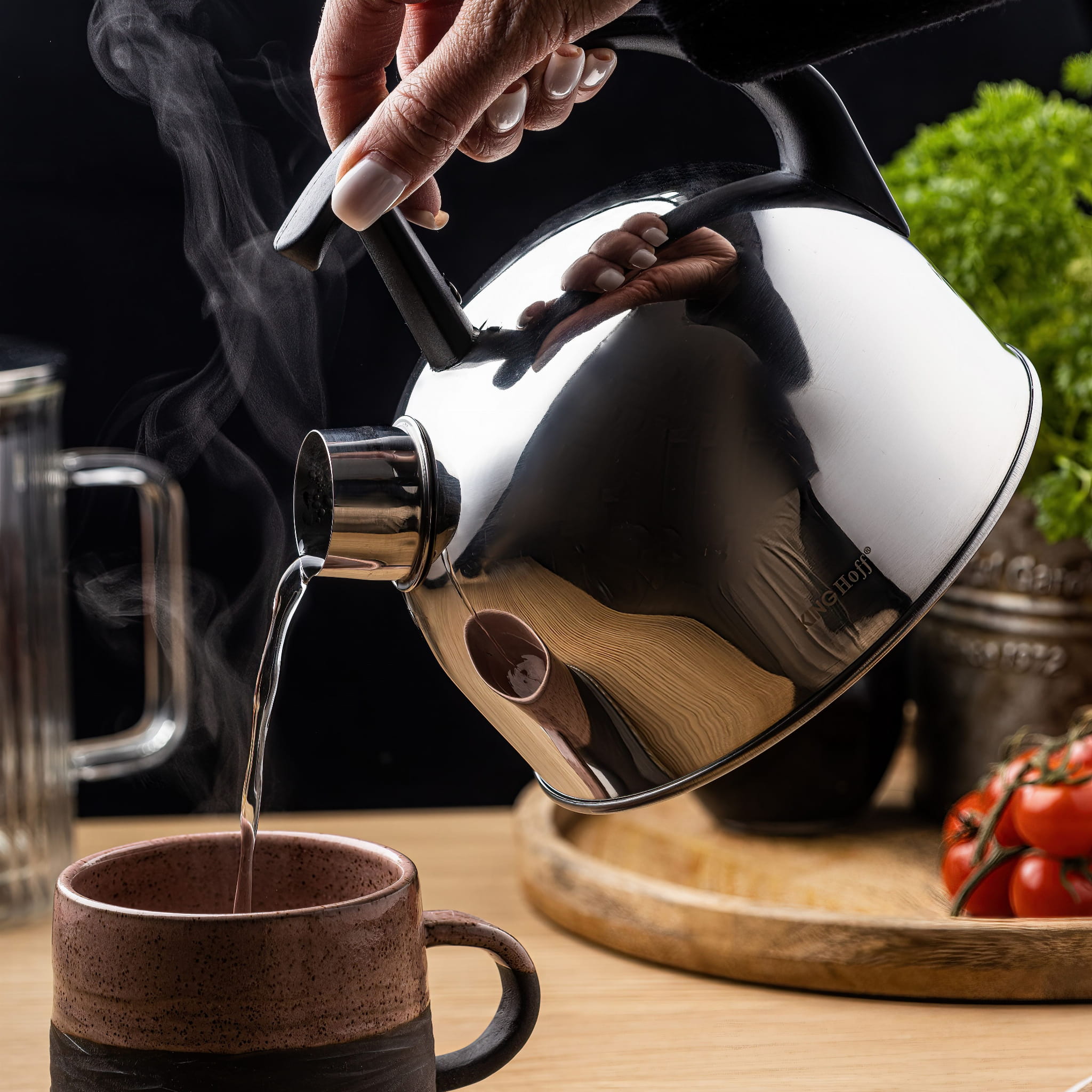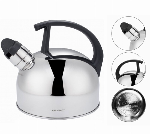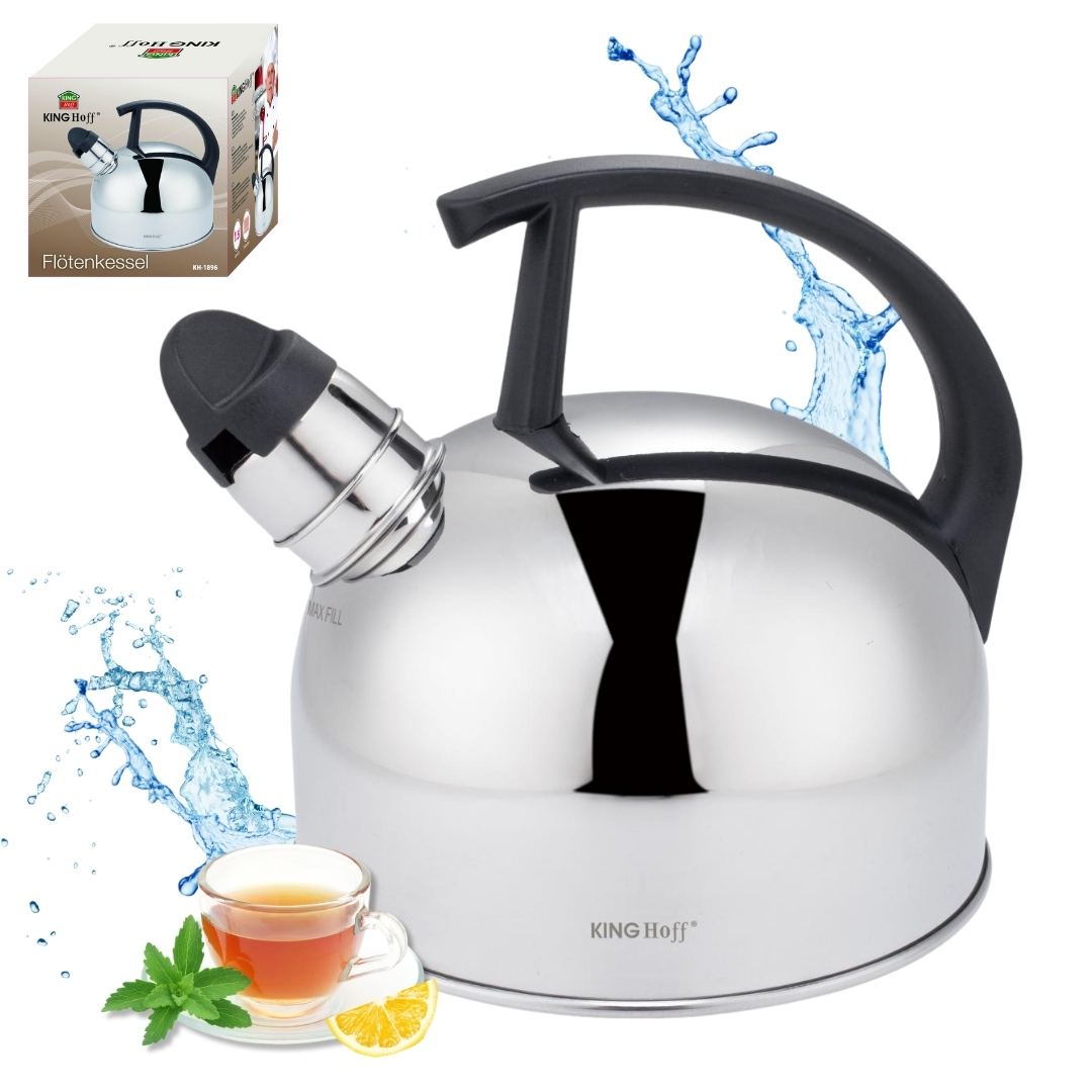 Czajnik stalowy 1.5L KINGHOFF. Wykonany ze stali nierdzewnej. Błyszczący w kolorze srebrnym.