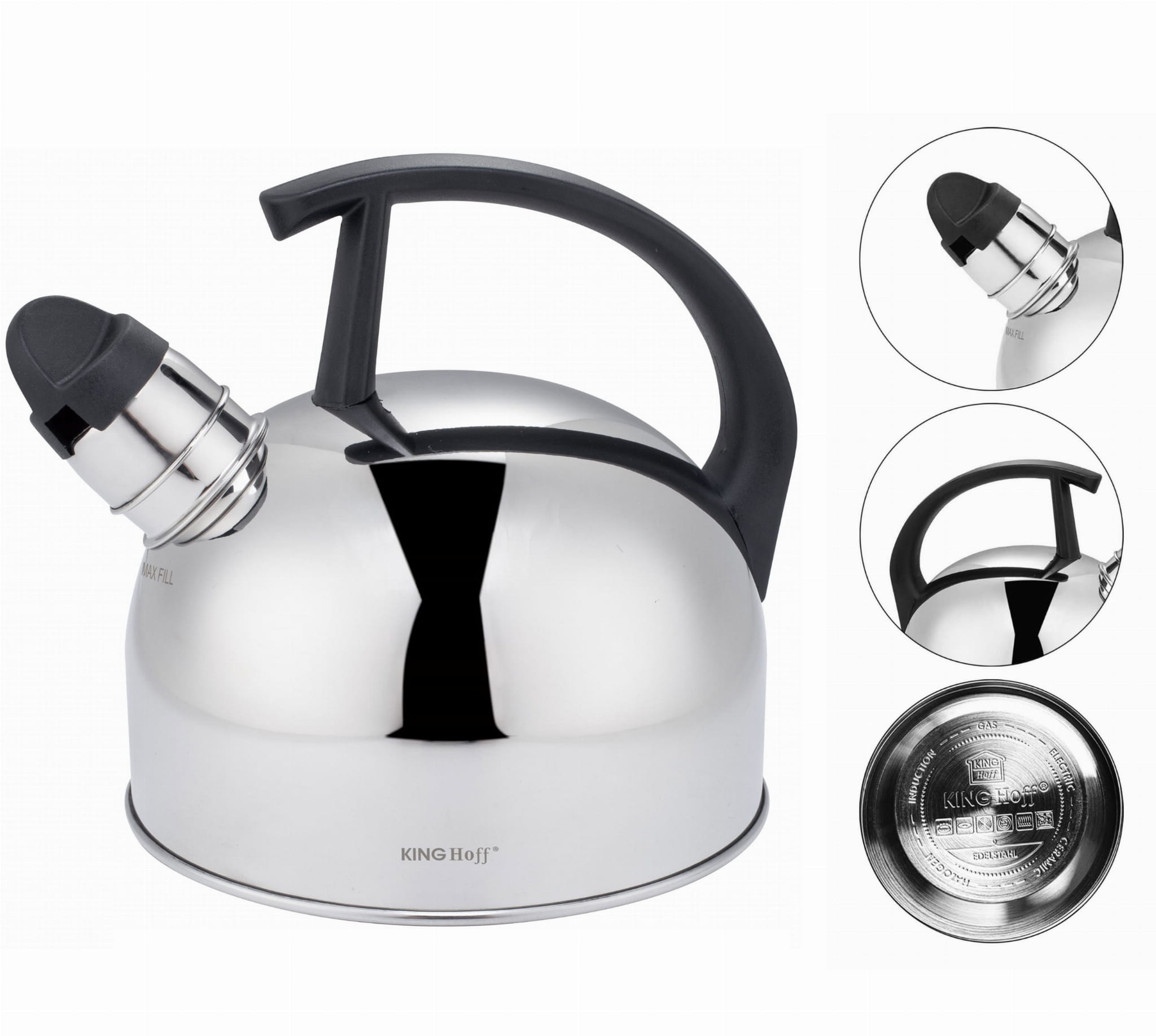 Czajnik stalowy 1.5L błyszczący srebrny KINGHOFF KH-1896