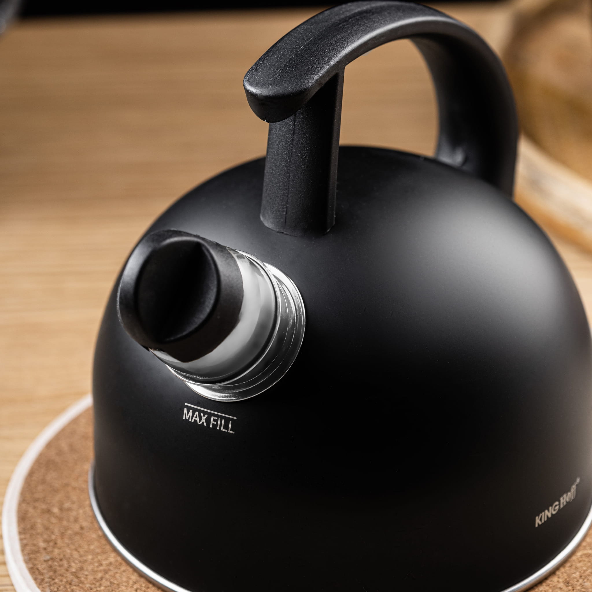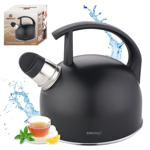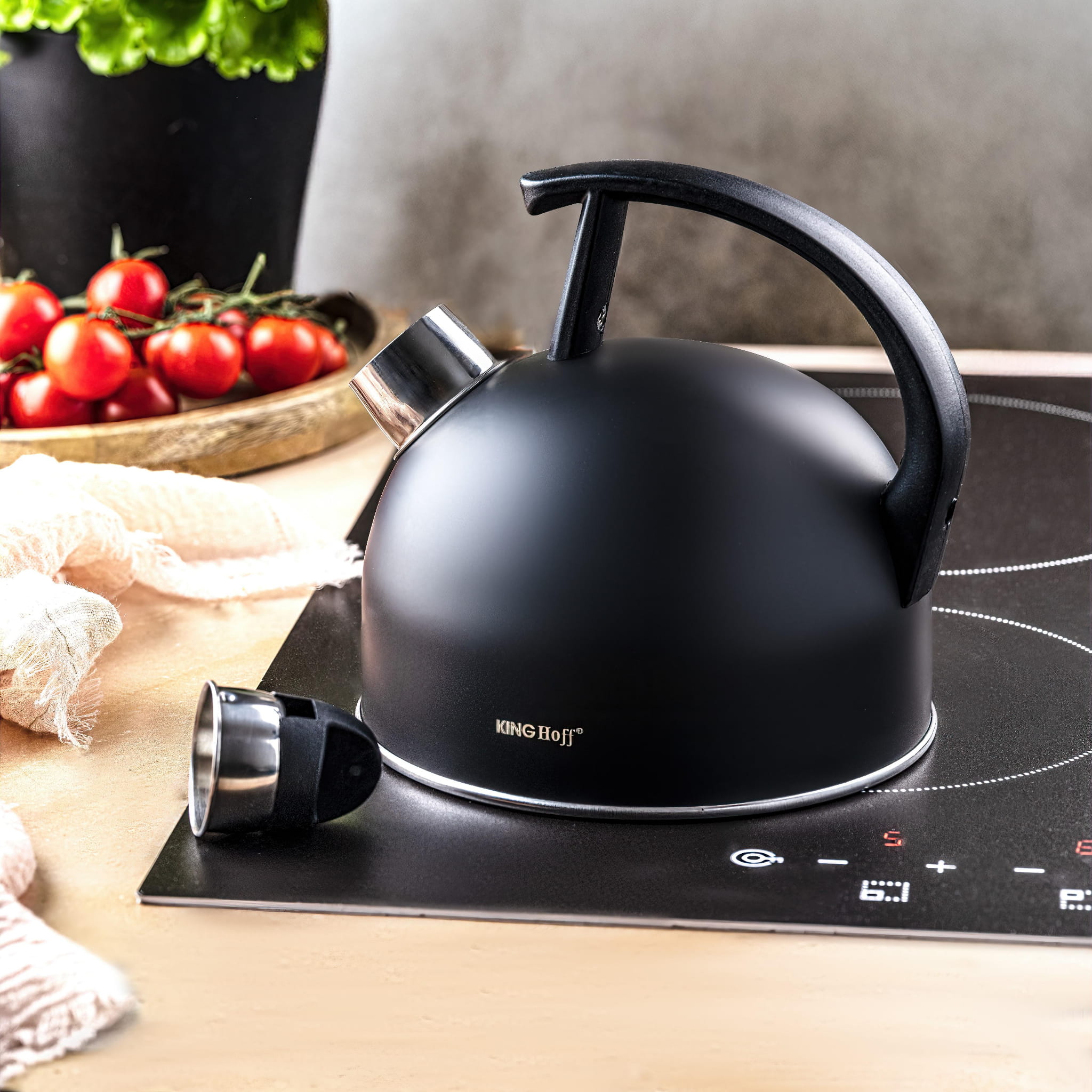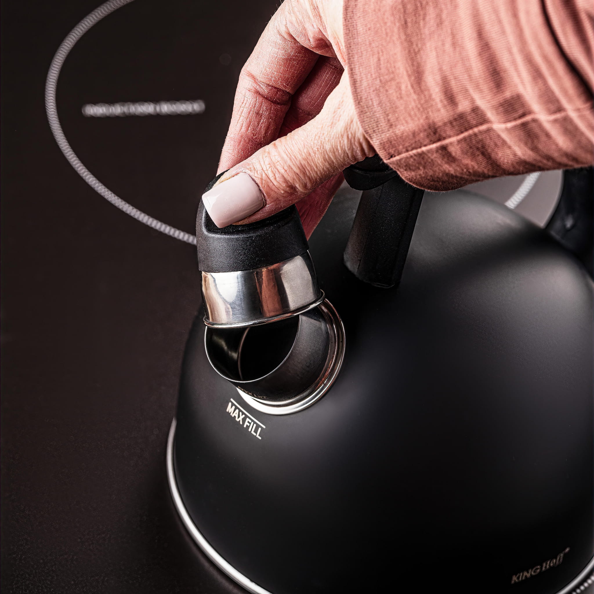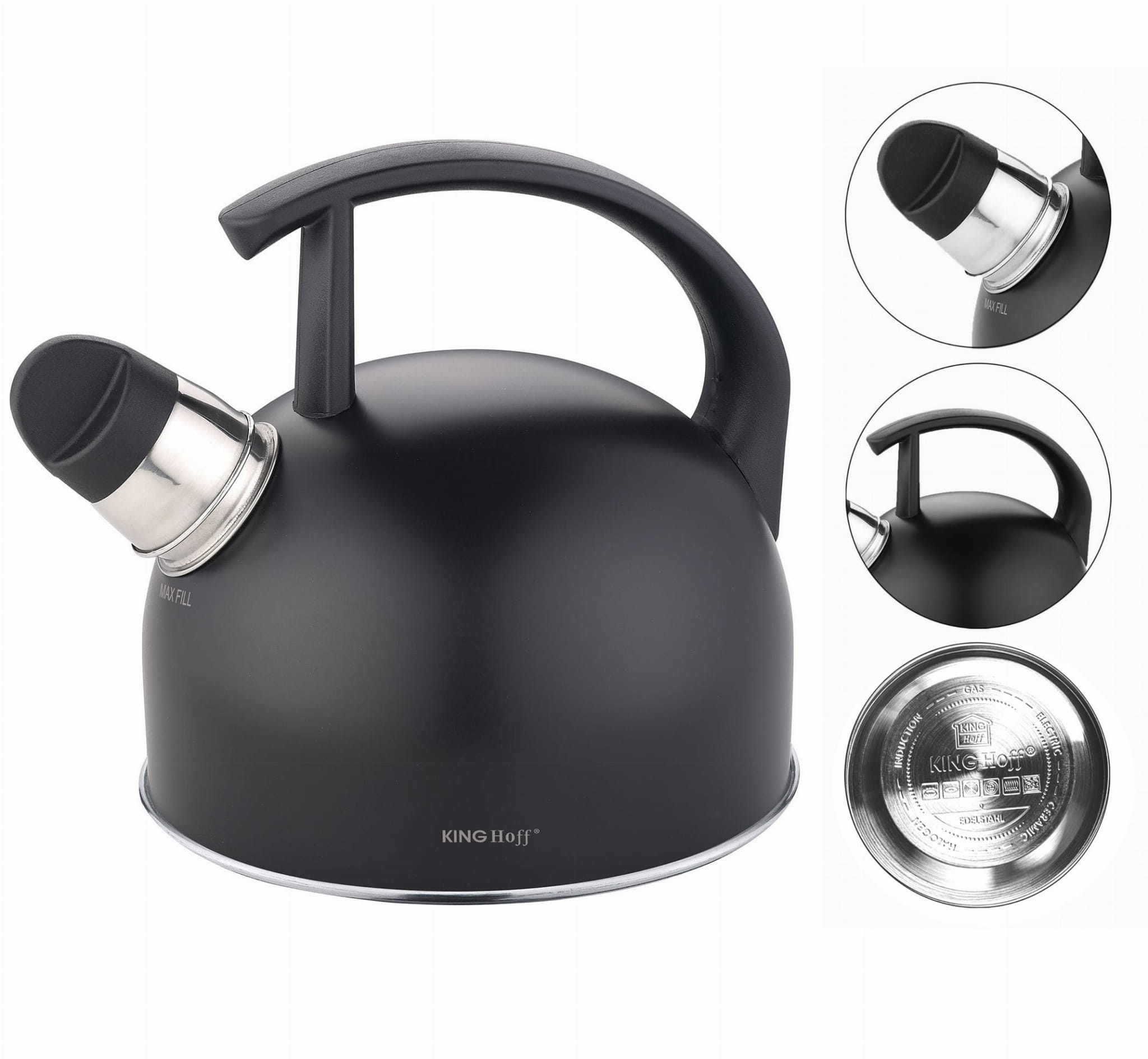 Czajnik stalowy 1.5L KINGHOFF. Wykonany ze stali nierdzewnej. Matowy w kolorze czarnym.