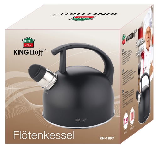 Czajnik stalowy 1.5L matowy czarny KINGHOFF KH-1897