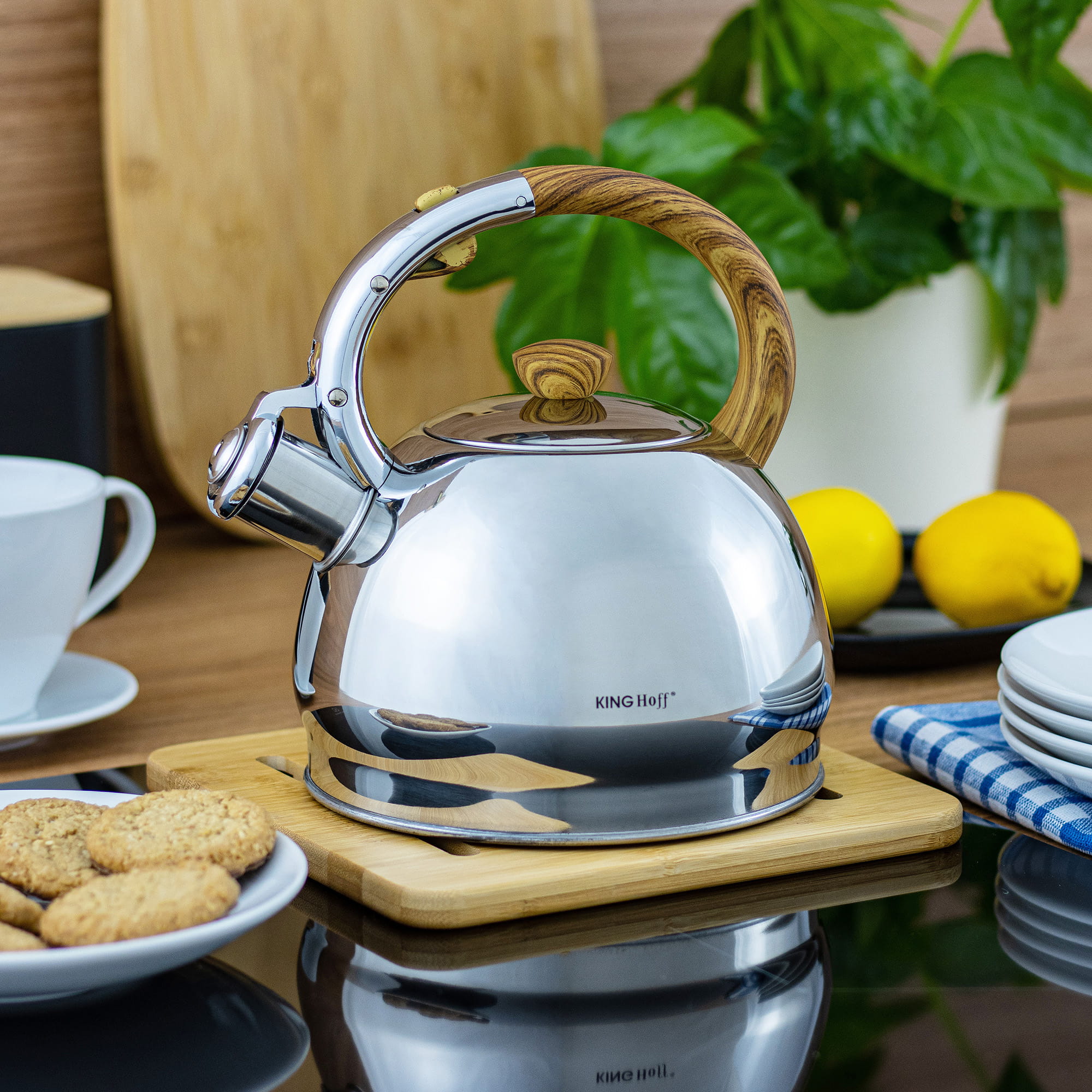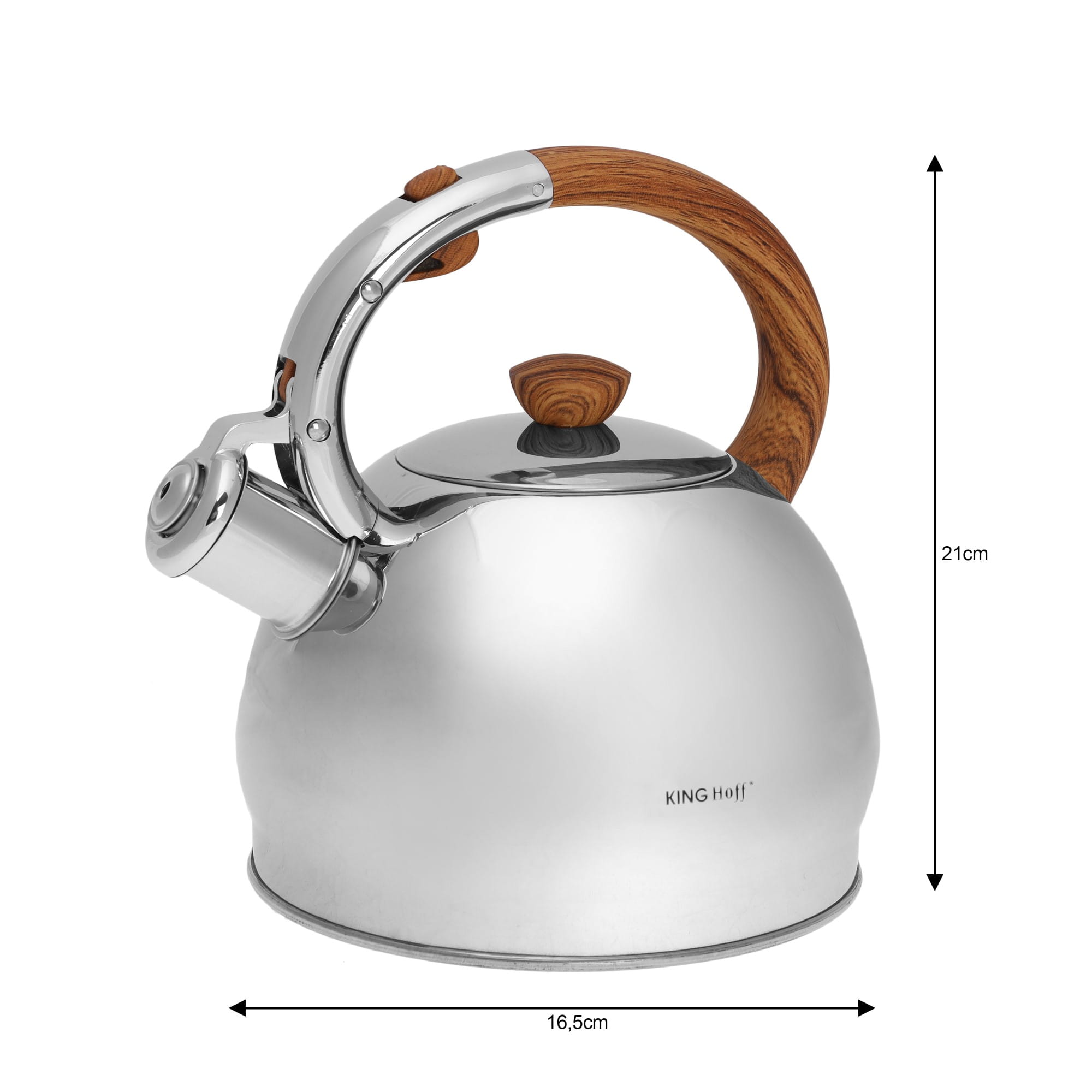 Czajnik stalowy 2.0L KINGHOFF wykonany z wysokiej jakości stali nierdzewnej. Czajnik może być ozdobę każdej kuchni i przykuwa uwagę swoją formą oraz wykończeniem.