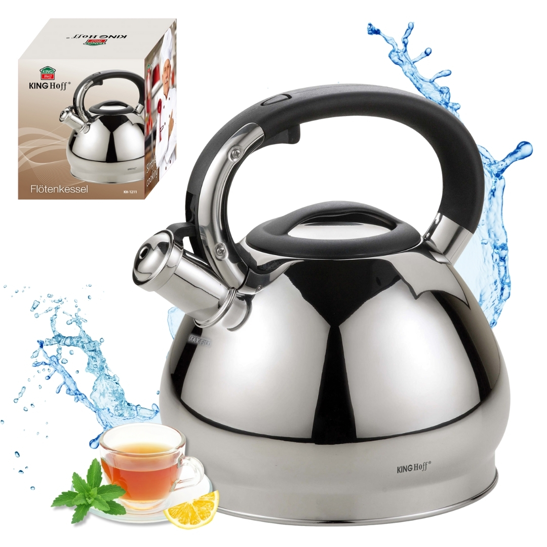 Czajnik stalowy 3.4L KINGHOFF wykonany z wysokiej jakości stali nierdzewnej. Czajnik stanowi niewątpliwą ozdobę każdej kuchni i przykuwa uwagę swoją formą i wykończeniem. Odpowiedni do wszystkich rodzajów kuchenek i płyt: elektrycznych, ceramicznych, gazowych, halogenowych, indukcyjnych.