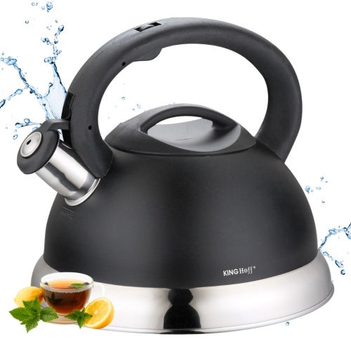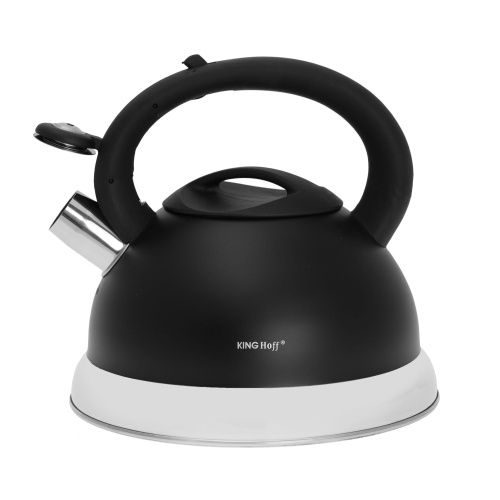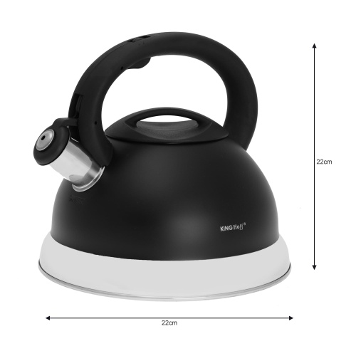 CZAJNIK STALOWY 3.0L KINGHOFF z GWIZDKIEM. Gwizdek zintegrowany, otwierany przyciskiem.