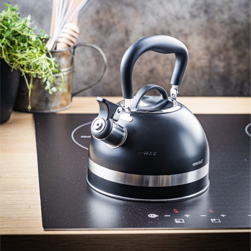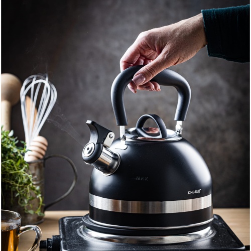Czajnik stalowy na gaz 1.8L mały indukcja czarny KINGHOFF KH-1858