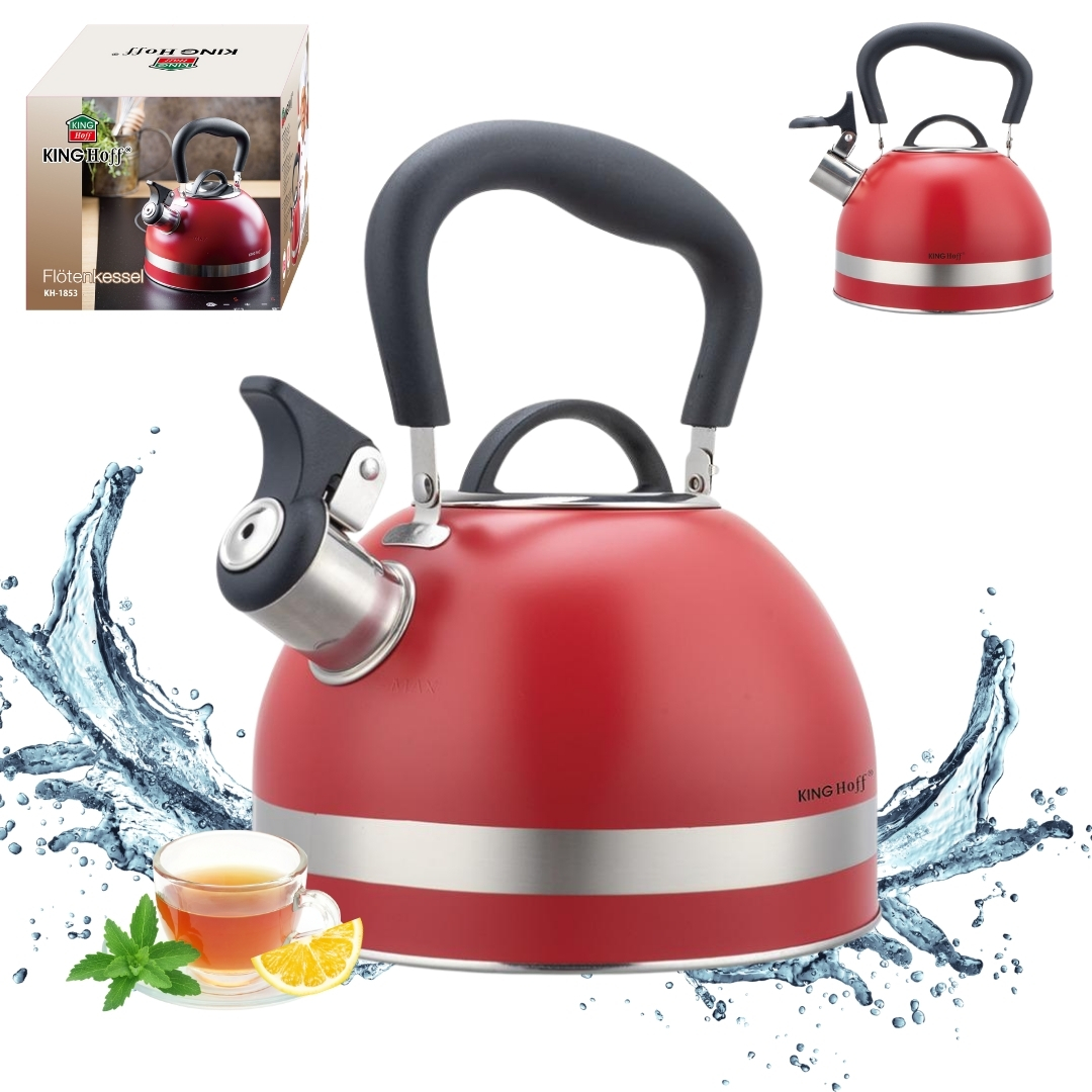 Czajnik stalowy na gaz 1.8L mały indukcja czerwony KINGHOFF KH-1853