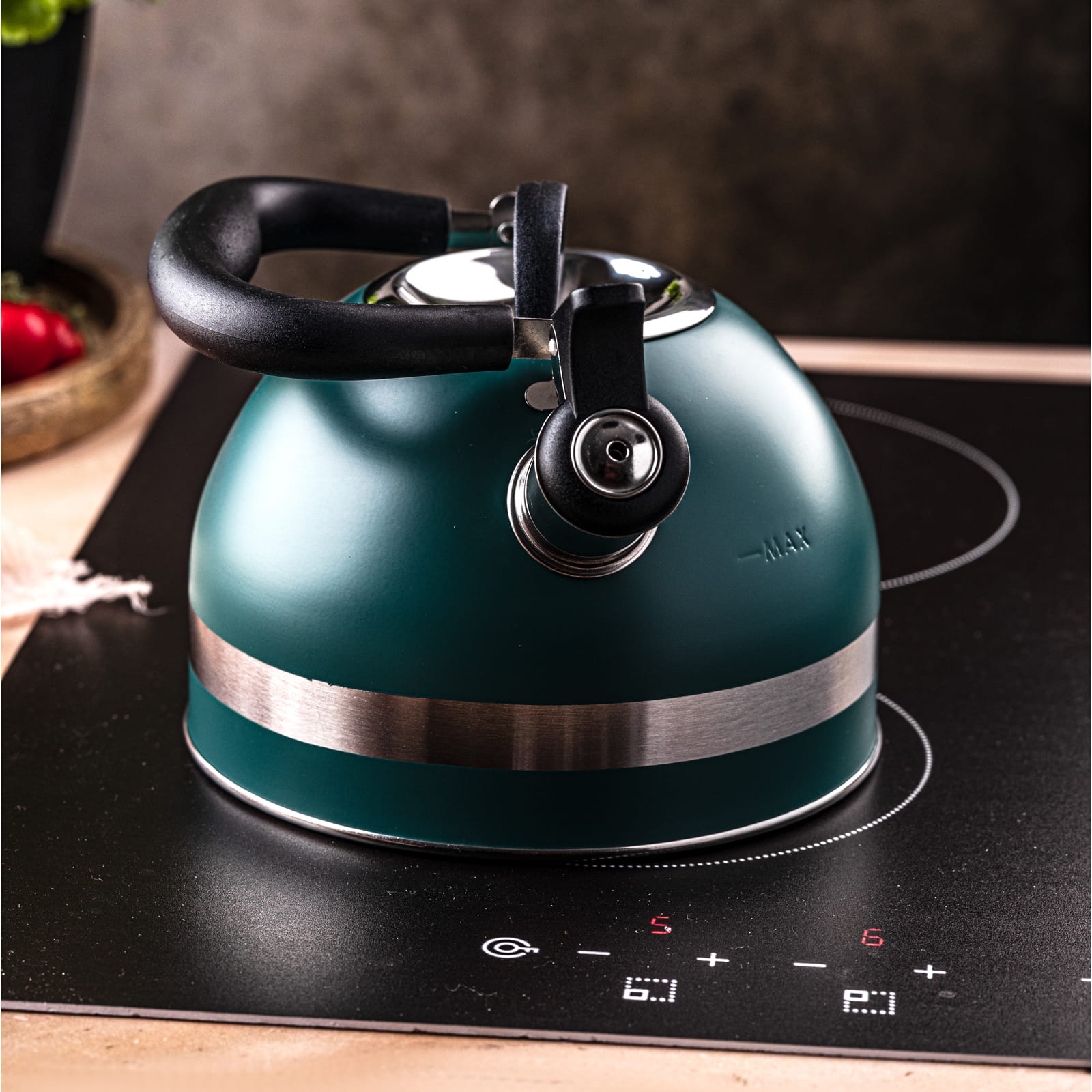 - Wyposażony w gwizdek – sygnalizuje zagotowanie wody dźwiękiem, zapewniając wygodę i bezpieczeństwo.