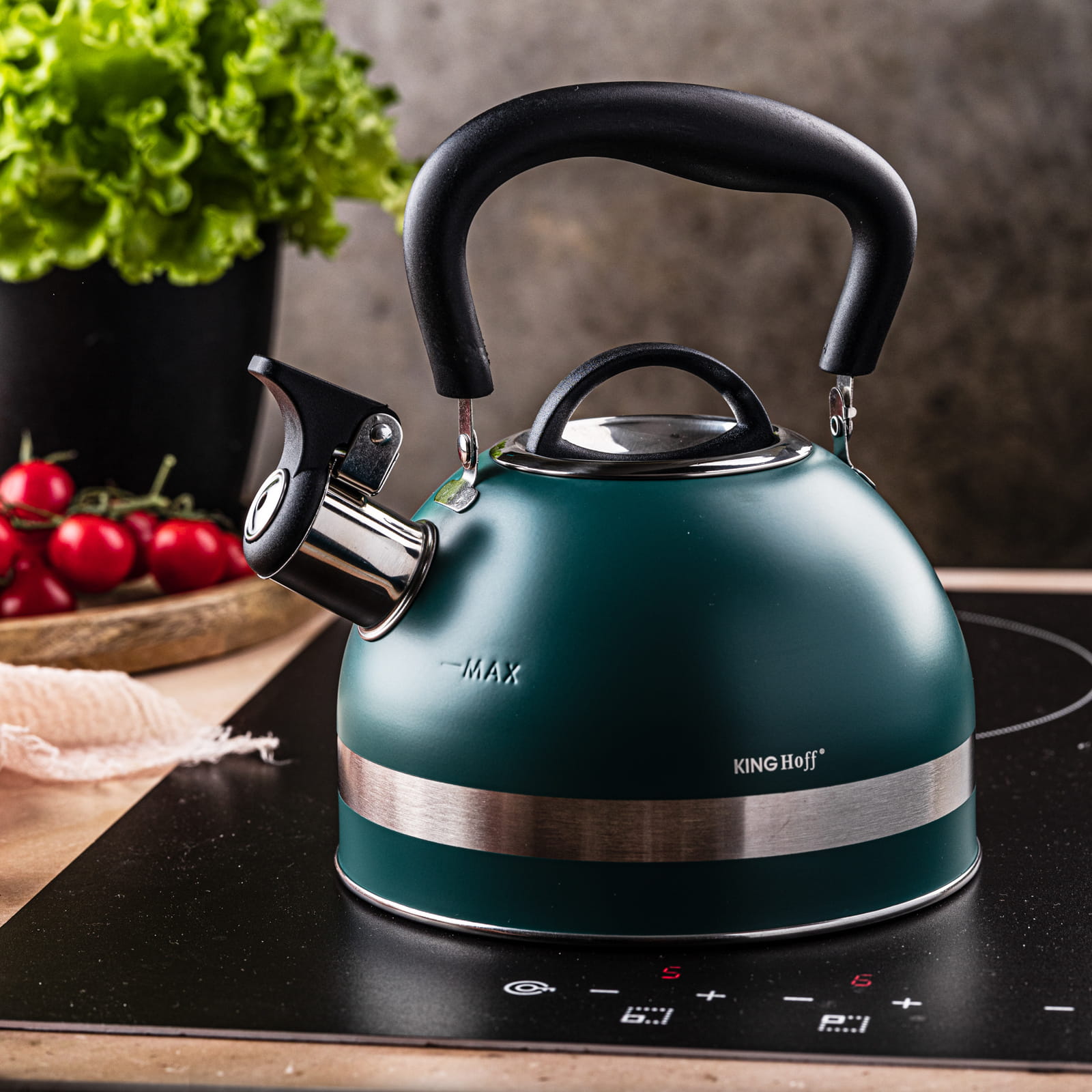 Czajnik stalowy na gaz 1.8L mały indukcja zielony KINGHOFF KH-1855