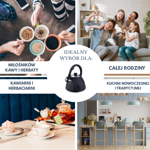 Wyposażony w głośny gwizdek, ergonomiczny uchwyt typu „soft touch” oraz bezpieczny mechanizm otwierania dziobka za pomocą przycisku, gwarantuje komfort i wygodę podczas gotowania wody. Dno przystosowane do wszystkich rodzajów kuchenek – również indukcji – zapewnia pełną uniwersalność użytkowania.