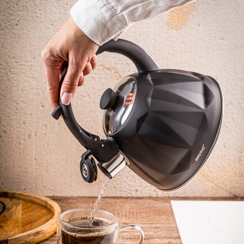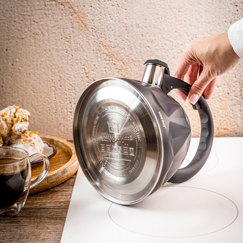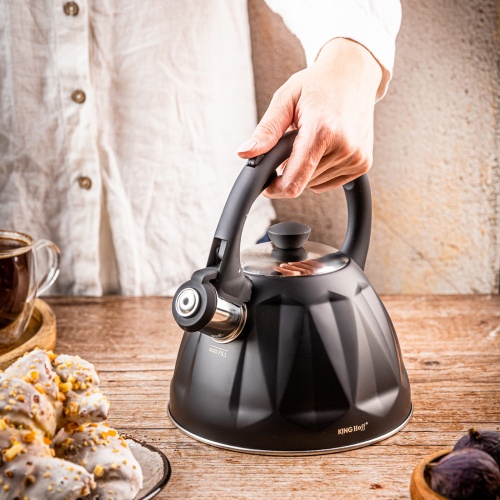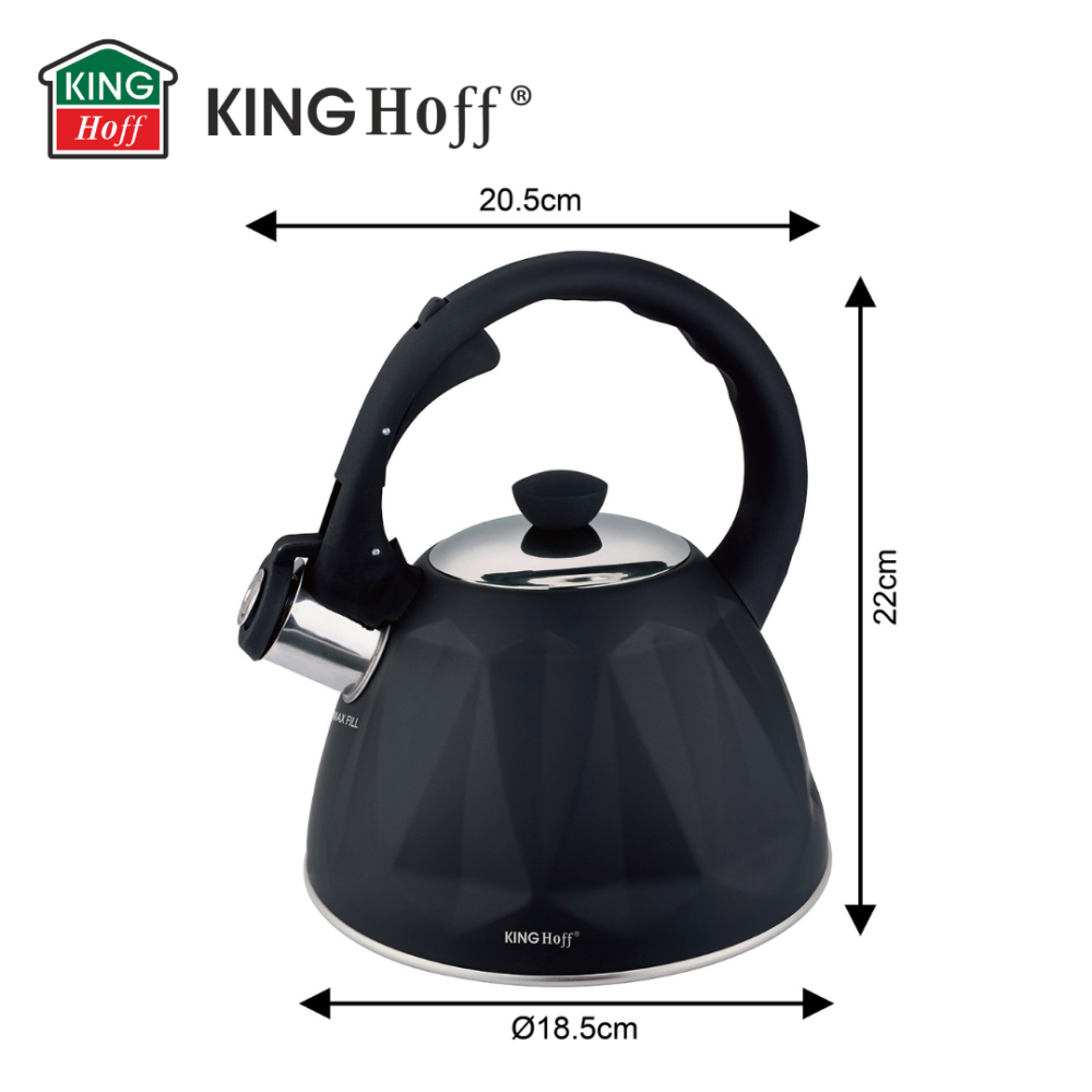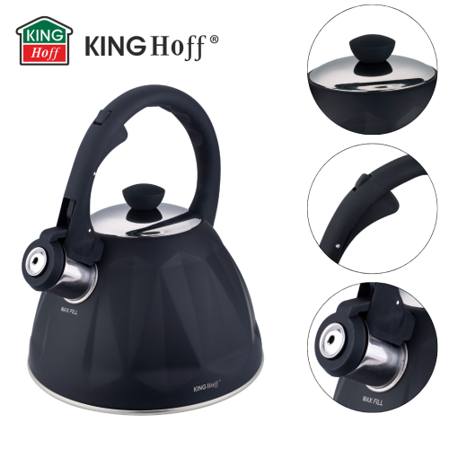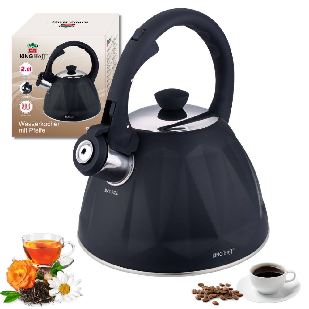 Czajnik z gwizdkiem, 2 L, czarny mat, stal nierdzewna KINGHOFF KH-1997