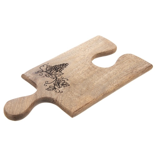 Deska wykonana z drewna mangowca, z ozdobnym motywem winogron. Idealna do serwowania serów, wędlin i przekąsek. Oryginalny kształt umożliwia łączenie kilku desek.
