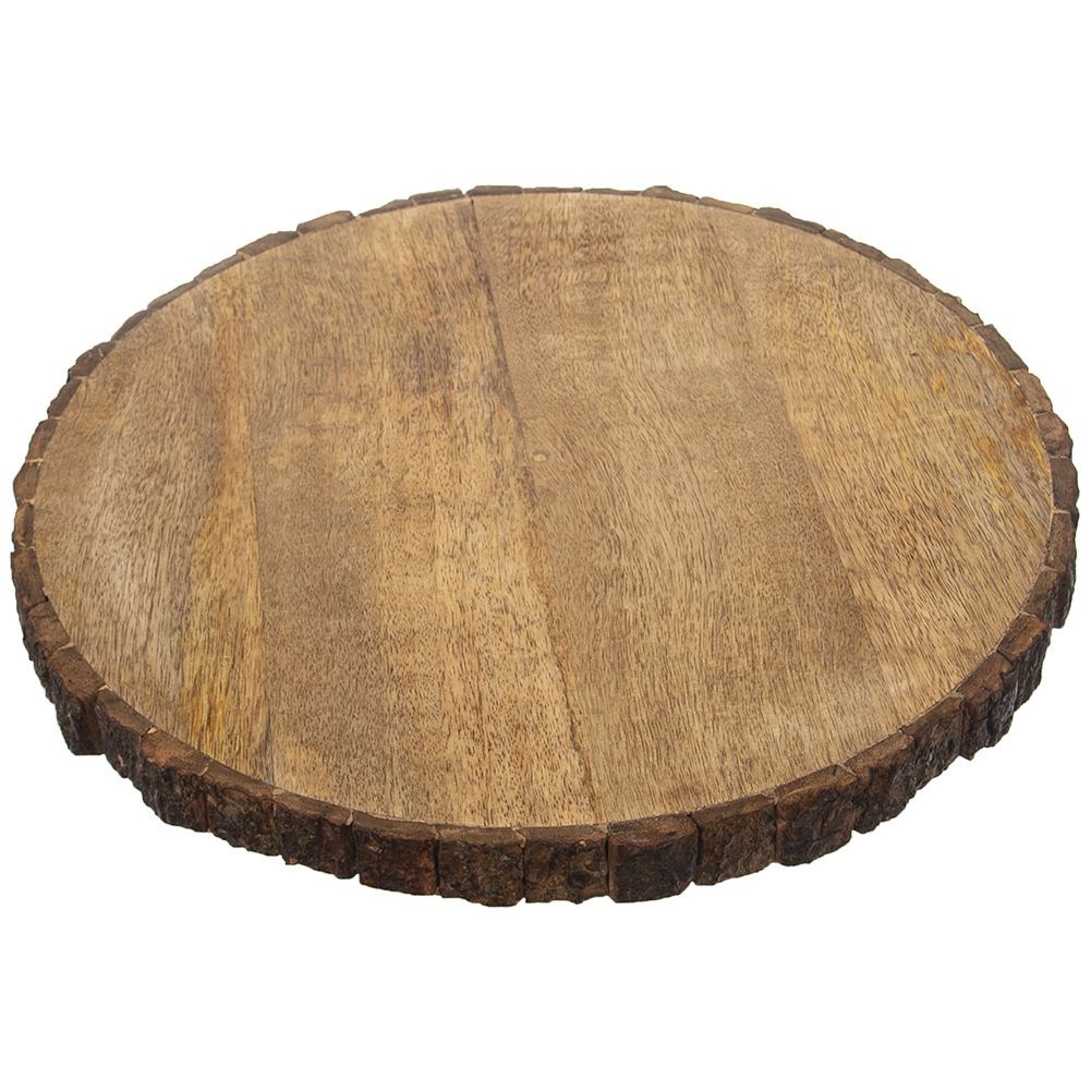 - PRAKTYCZNA - Dekoracyjny plaster drewna wraz z korą w naturalnym kolorze. Sprawdzi się jako deska do krojenia i serwowania żywności. Plaster ma średnicę około 39 cm i grubość 3 cm.
