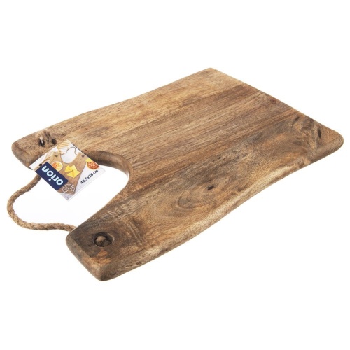 Drewniana deska do krojenia oraz serwowania posiada piękny, nieregularny kształt. Jest niezwykle przydatna w każdej kuchni. Solidnie wykonana, odporna na wilgoć i odkształcenia, pozwoli nam utrzymać blat w czystości oraz ochroni go przed zarysowaniami. Deska doskonale sprawdzi się zarówno w użytku domowym, jak i w lokalach gastronomicznych. Drewno mangowca jest materiałem ekologicznym i bezpiecznym dla zdrowia. W celu odpowiedniej konserwacji nie zaleca się mycia w zmywarce do naczyń. Zaleca się od czasu do czasu natrzeć deskę olejem spożywczym. Oryginalny produkt czeskiej marki Orion. Wyprodukowano zgodnie z europejskimi standardami.
