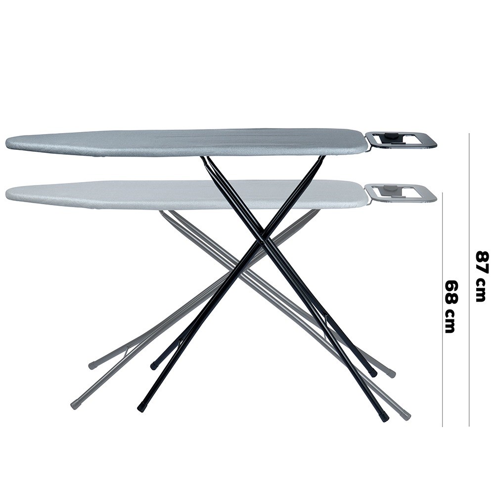 - PRAKTYCZNA - Rozkładana deska do prasowania, zapewnia komfort i efektywność podczas prasowania. Deska ma wymiary całkowite po rozłożeniu 130 x 34 x 87,5 cm. Wymiary powierzchni do prasowania wynoszą 110 x 34 cm.