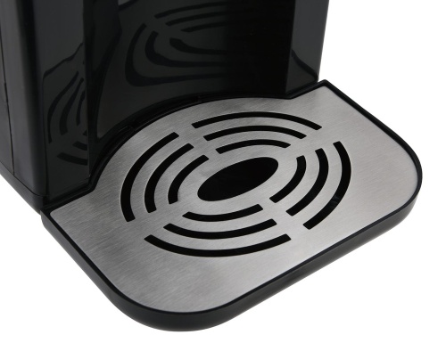 - W celu zapewnienia funkcjonalności dystrybutor wyposażony jest w przezroczysty wyjmowany zbiornik na wodę z wyraźnym oznaczeniem poziomu wody oraz odłączaną tackę ociekową z plastikową pokrywą ułatwiającą czyszczenie.