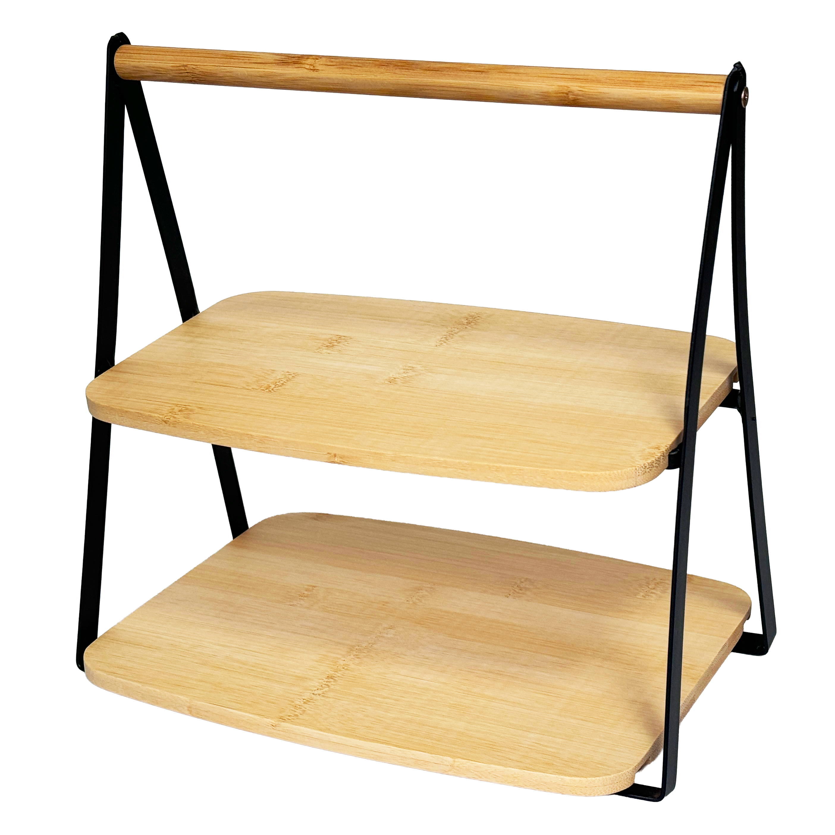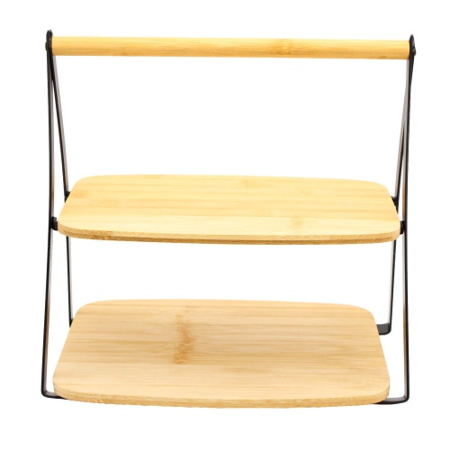 Patera dwupoziomowa bambusowa ze składanym stelażem