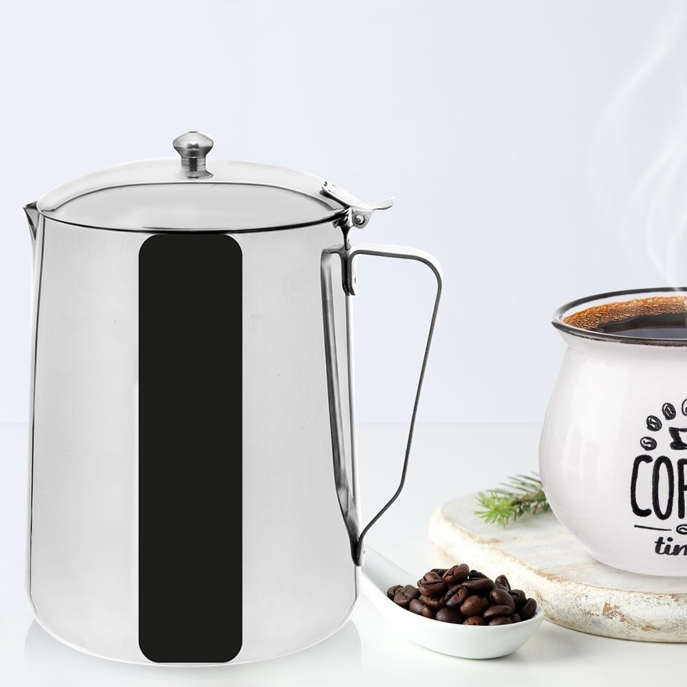 - STALOWY - Dzbanek z pokrywką do serwowania mleka lub śmietanki do kawy. Wykonany z najwyższej jakości stali nierdzewnej w srebrnym kolorze. Dzbanek z pokrywką ma pojemność 2.3 L oraz wymiary: 16.5 x 14 x 20 cm.