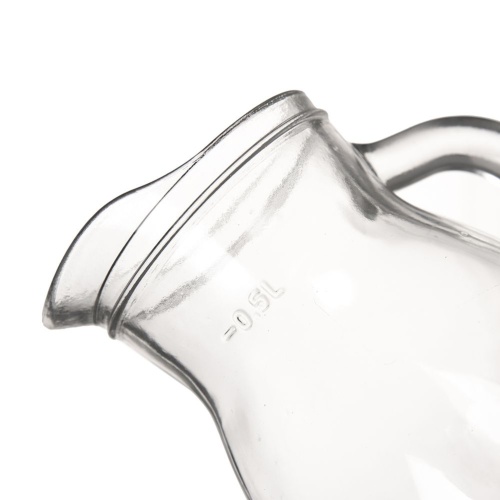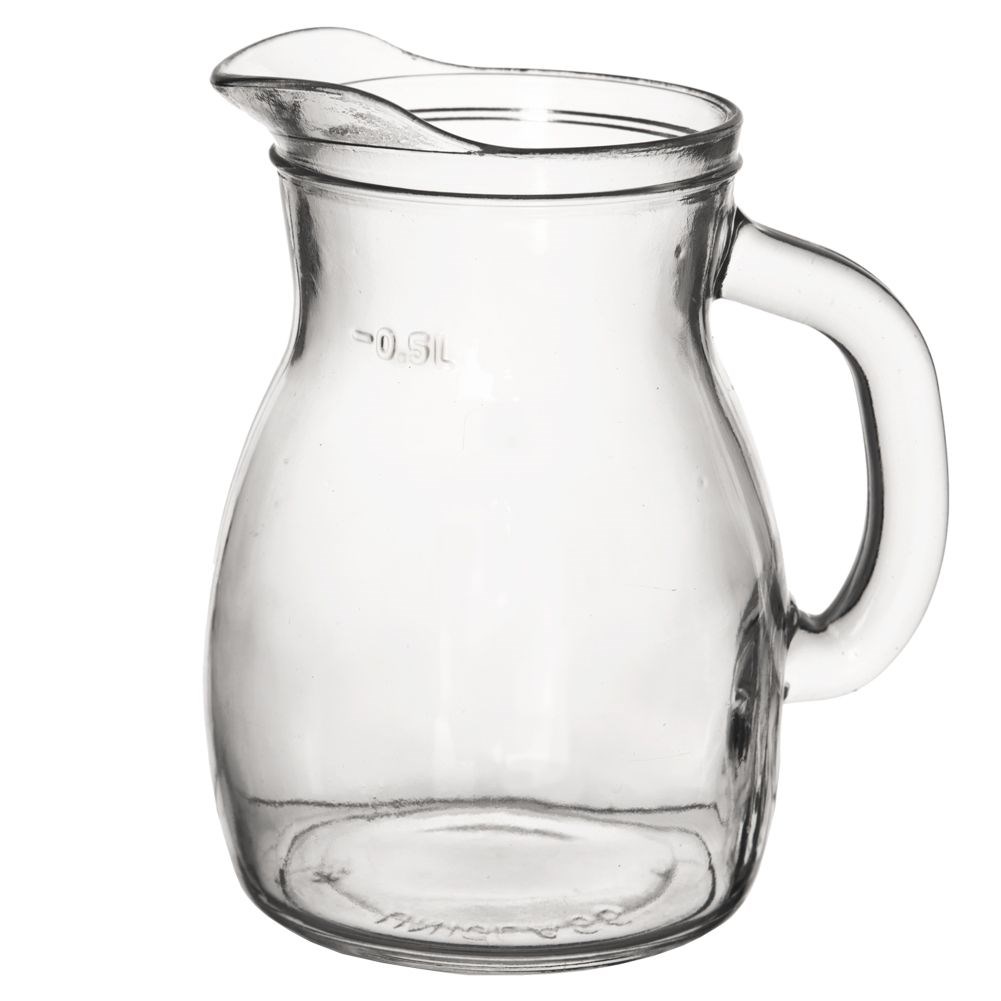 Szklany dzbanek o uniwersalnym zastosowaniu. Możemy serwować w nim napoje, wino, ale również mleko czy sos. Posiada dzióbek, uchwyt oraz miarkę informującą o 500 ml.