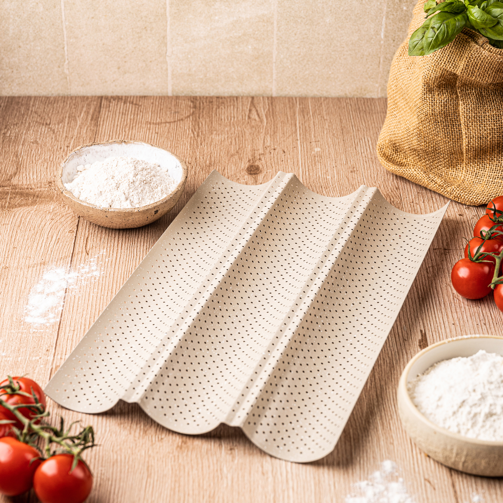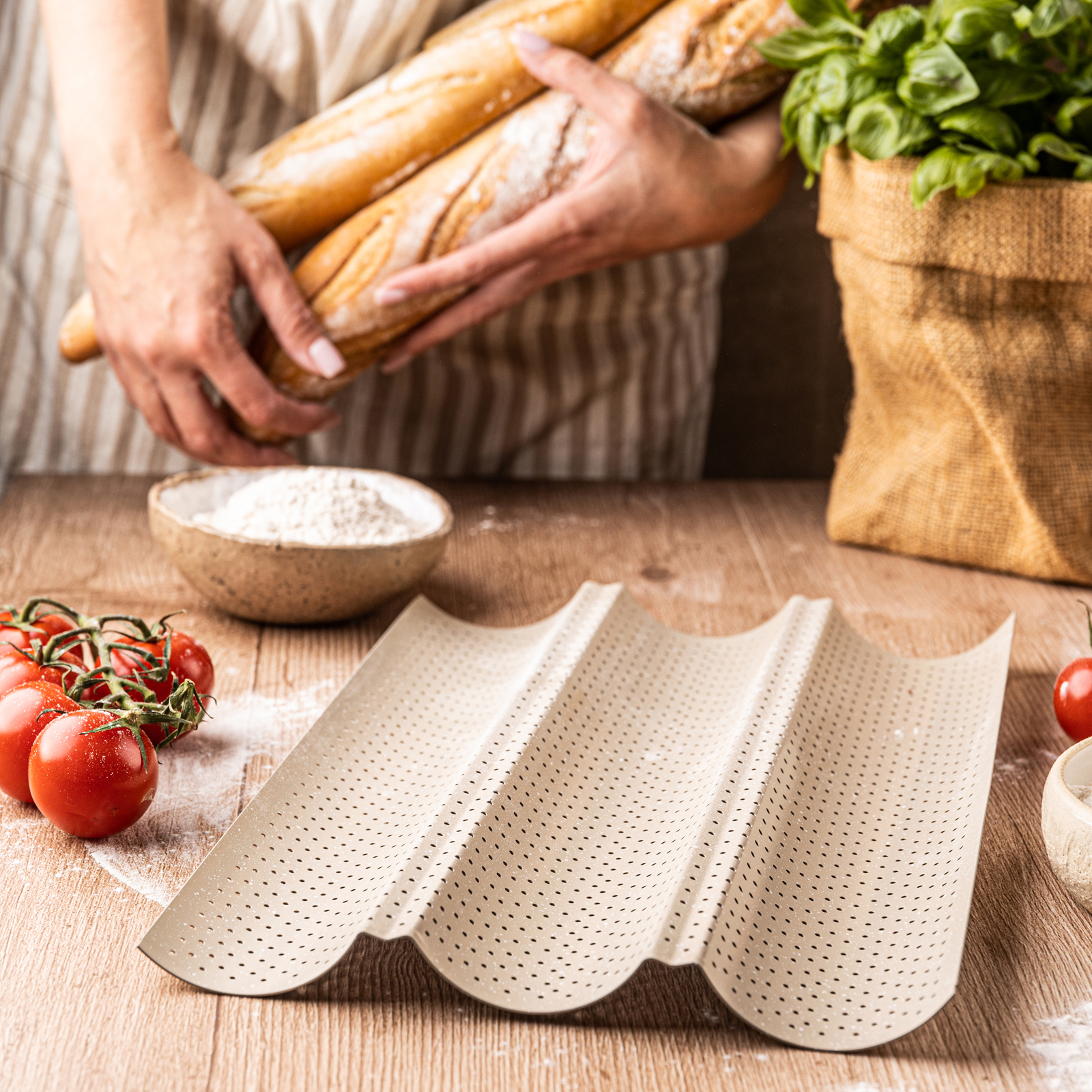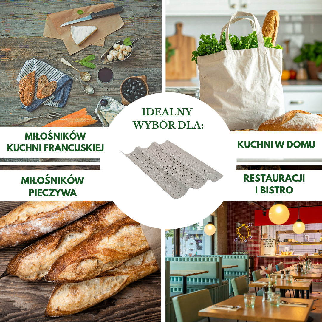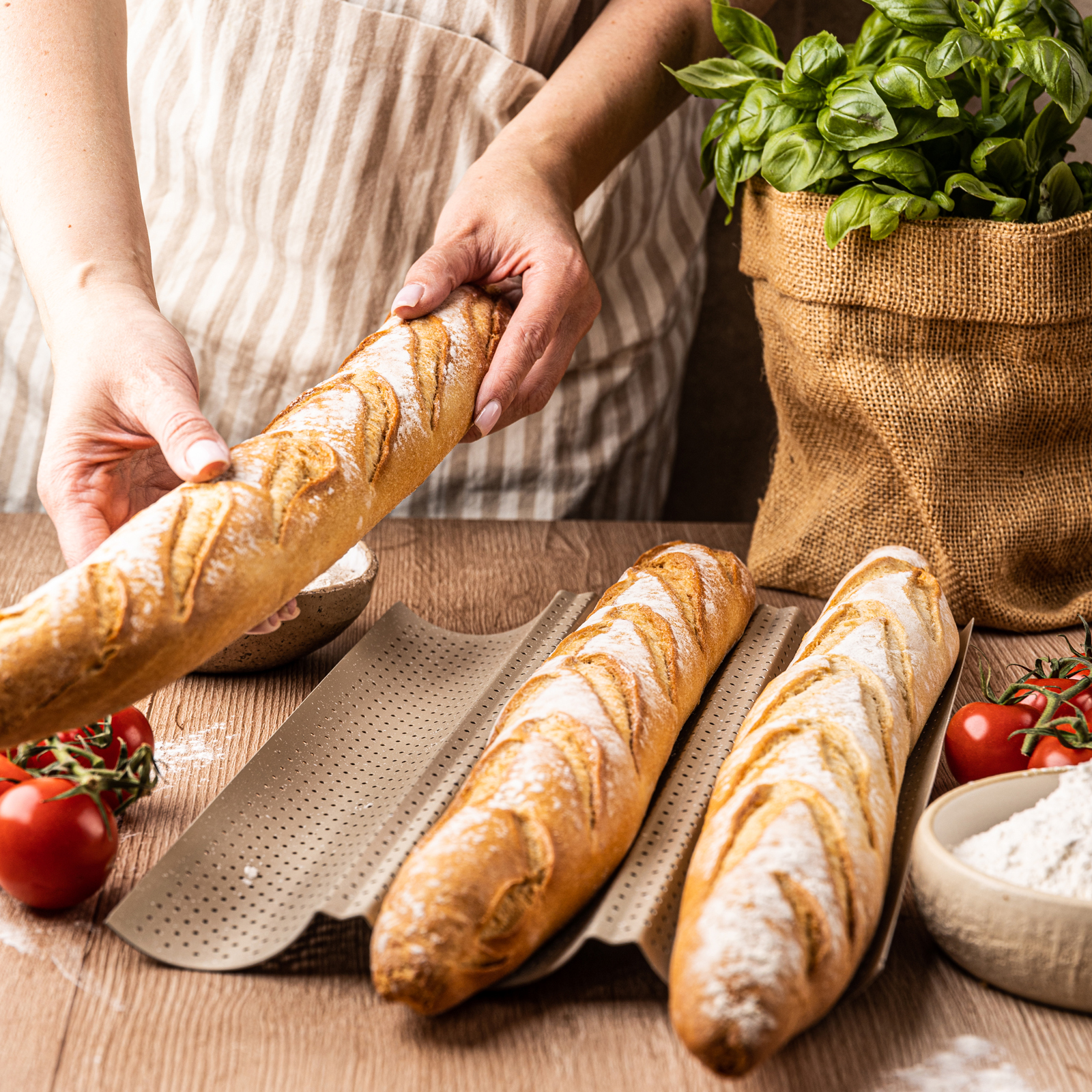 Forma do bagietek KINGHoff KH-1970 to idealny wybór dla każdego, kto ceni zapach świeżego pieczywa i chce osiągnąć efekty jak z prawdziwej francuskiej piekarni – prosto w swojej kuchni.