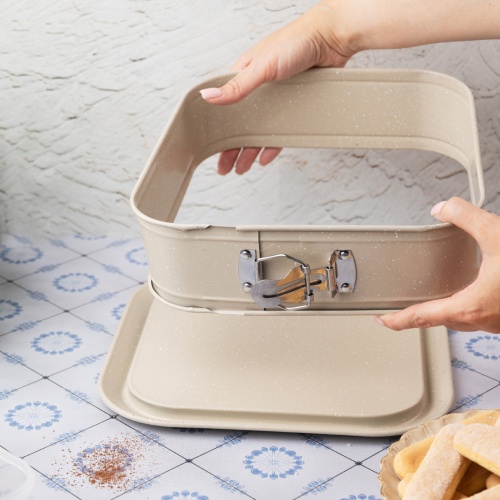 Forma do pieczenia ciasta, rozpinana, 27,5x27,5x8cm, stal węglowa, marmurkowa, beżowa, KINGHOFF KH-1977