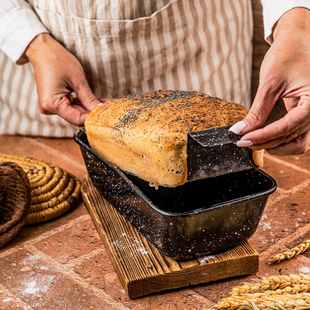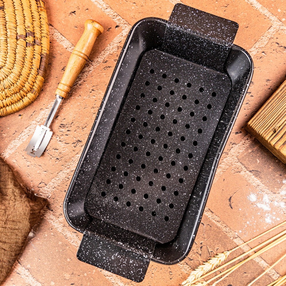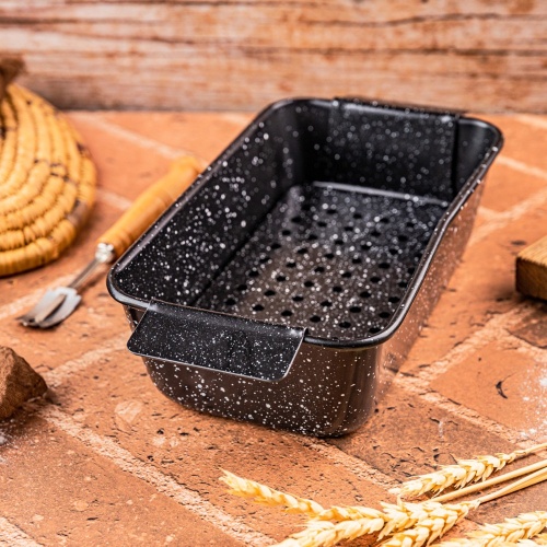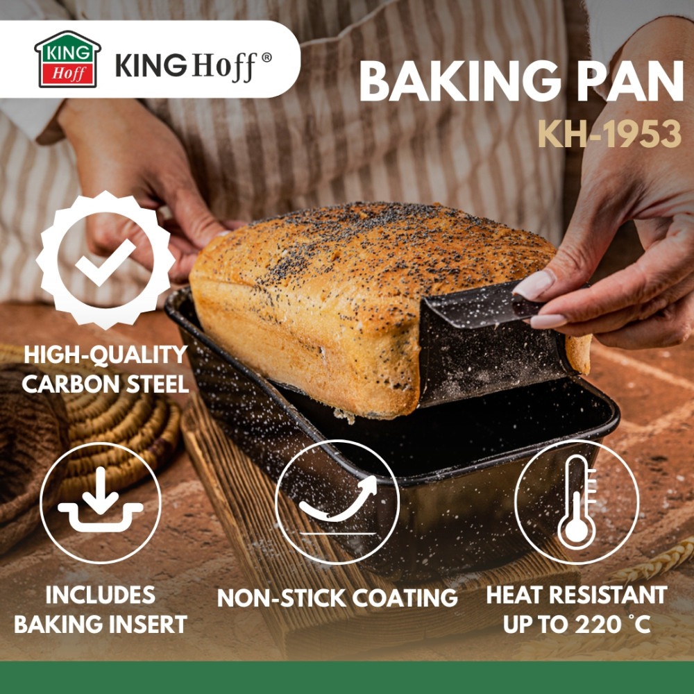 Forma do pieczenia z wkładką z otworami KINGHoff KH-1953 została wykonana z wysokiej jakości stali węglowej, pokrytej nieprzywierającą powłoką, która gwarantuje równomierne pieczenie. Dzięki dołączonej, wyjmowanej wkładce, forma jest niezwykle wszechstronna i świetnie sprawdzi się zarówno do pieczenia chleba, babek, jak i mięsnych pieczeni.
