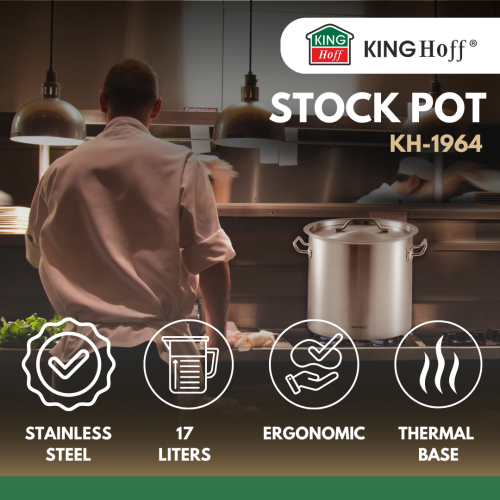 Profesjonalny garnek gastronomiczny o pojemności 33L KINGHoff to niezawodne rozwiązanie do kuchni, w których liczy się wytrzymałość, funkcjonalność i komfort pracy. Kompaktowy, a jednocześnie pojemny — idealny do przygotowywania większych porcji zup, sosów czy przetworów. Sprawdzi się zarówno w domowych kuchniach, jak i mniejszych lokalach gastronomicznych.