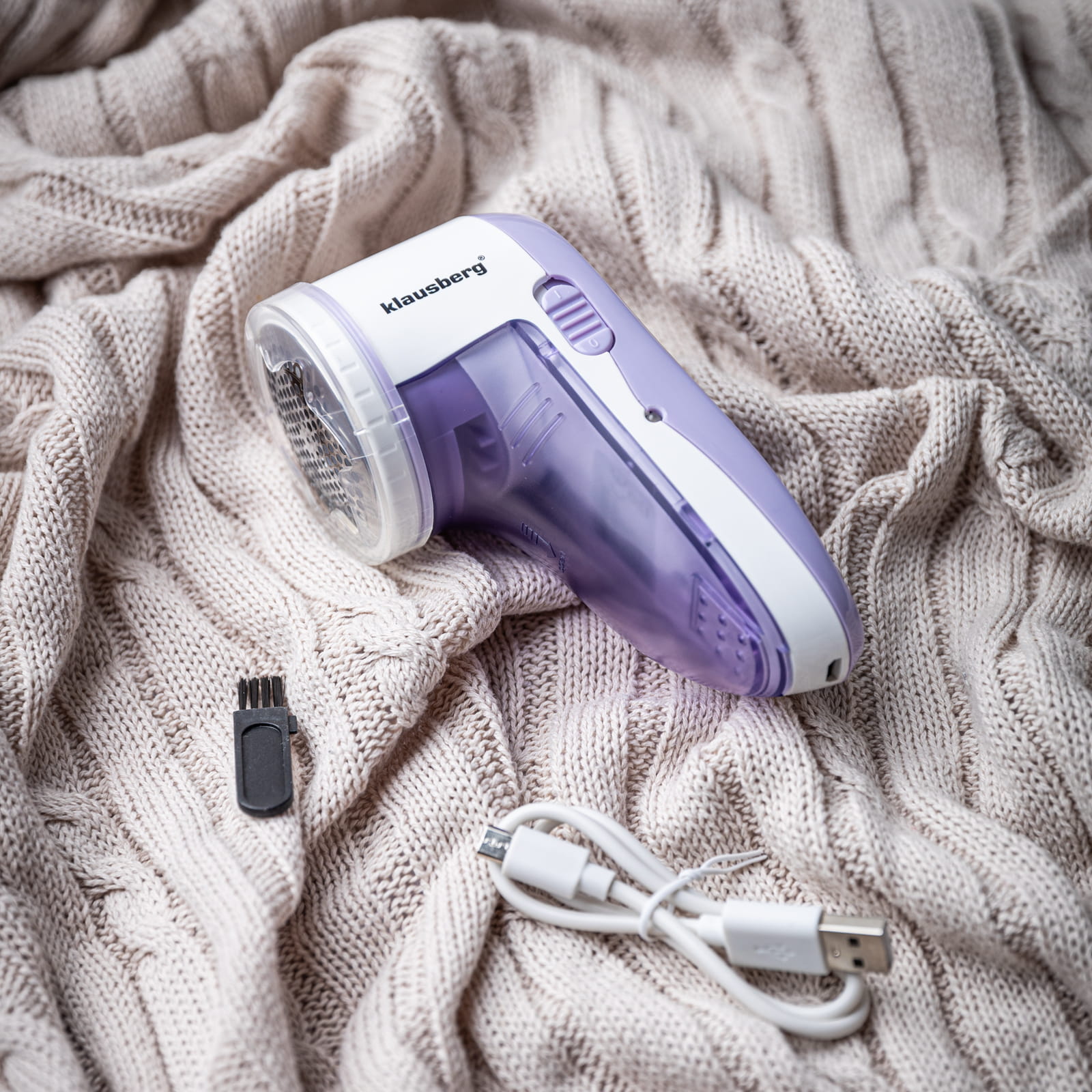 Elektryczna golarka akumulatorowa do ubrań, odzieży, swetrów i tkanin marki KLAUSBERG.