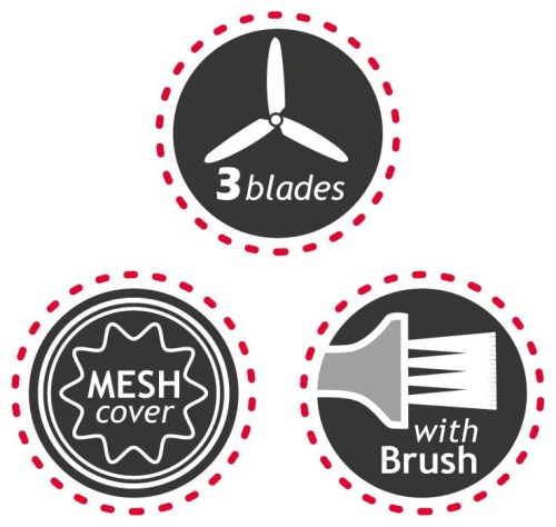 - Szczoteczka do czyszczenia w zestawie – umożliwia dokładne usunięcie wszelkich pozostałości włókien z ostrzy i kratki zabezpieczającej, zwiększając tym samym trwałość urządzenia.