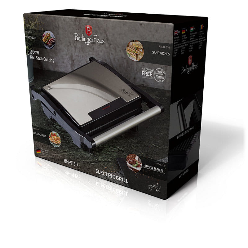 Elegancki i nowoczesny grill elektryczny 1500W firmy BERLINGER HAUS z linii Black Silver