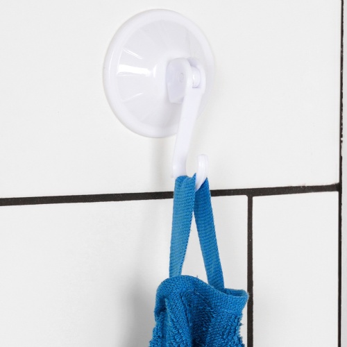 Wieszak na przyssawkę o uniwersalnym zastosowaniu. Wykonany z wytrzymałych materiałów. Ma uniwersalny wygląd i będzie pasował do każdego wnętrza. Znajdzie wiele zastosowań w domu. Doskonale sprawdzi się do wieszania ściereczek kuchennych, ręczniczków, a nawet ubrań. Przed przyklejeniem należy upewnić się, że powierzchnia, na której przyssawka ma być użyta, jest gładka i czysta. Wyprodukowano zgodnie z europejskimi standardami.