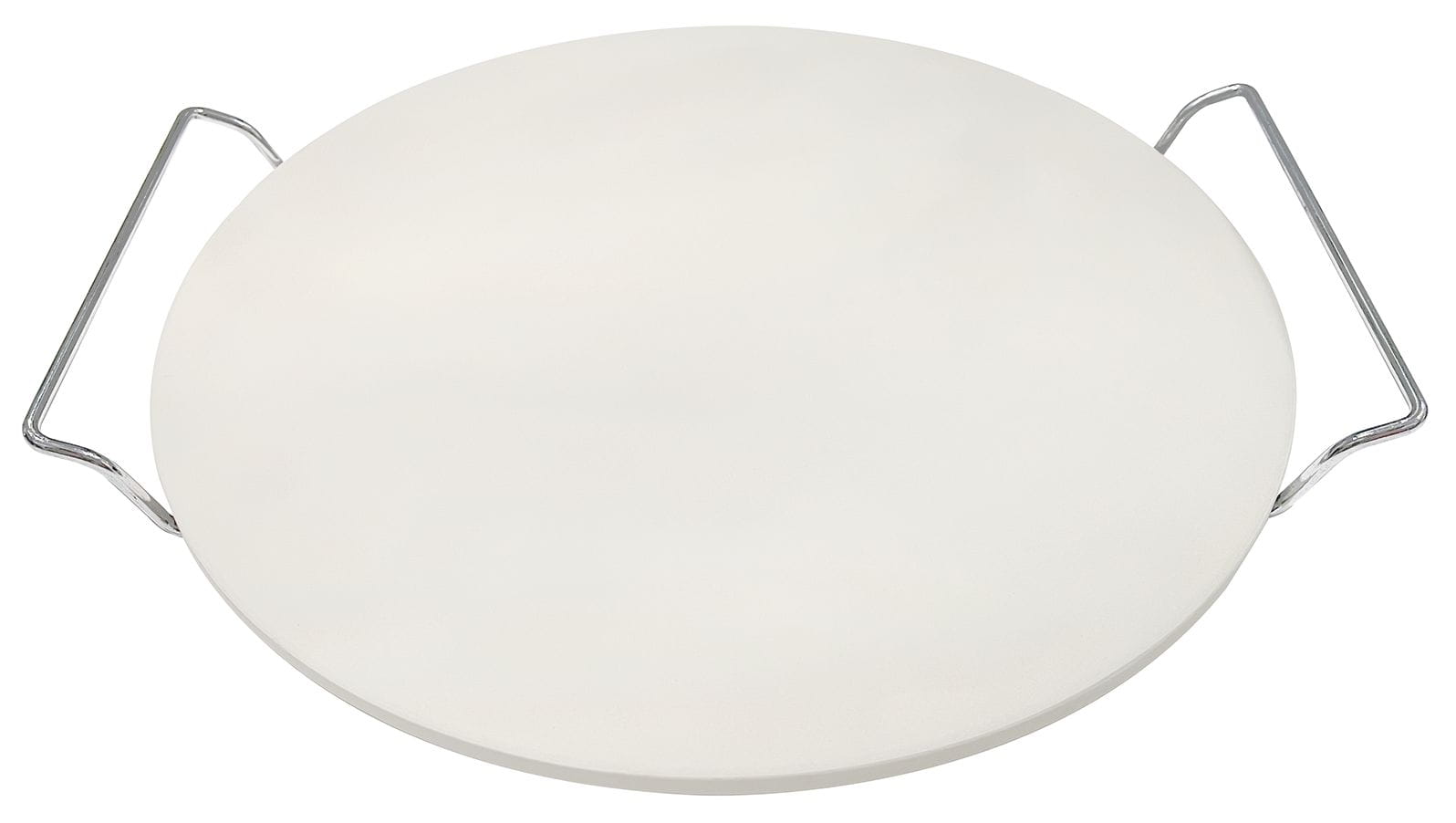 Kamień kordierytowy do pieczenia pizzy o średnicy 33 centymetrów w zestawie ze stojakiem.