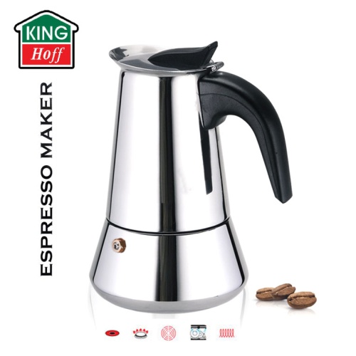 KAWIARKA CIŚNIENIOWA 300ml (5-6 FILIŻANEK) firmy KINGHOFF. Kawiarka (zaparzaczka ciśnieniowa) jest urządzeniem do przygotowywania tzw. kawy po włosku. Służy do ekspresowego przygotowania kawy o niepowtarzalnym, aromatycznym smaku prawdziwej kawy.