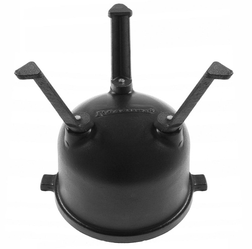 Kociołek żeliwny z patelnią grillową myśliwski o pojemności 8L firmy ROSSNER wykonany z żeliwa szarego, oksydowany z zewnątrz oraz wewnątrz.
