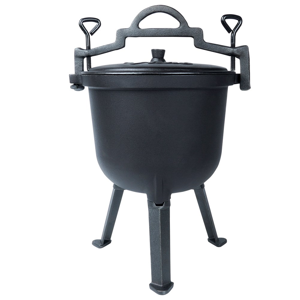 - SOLIDNY - Odpowiednio użytkowany kociołek posłuży nam długie lata. Po każdym użyciu umyć, wytrzeć suchą szmatką do sucha i natłuścić. Nie nadaje się do mycia w zmywarce do naczyń. Kociołek jest stabilny, usadowiony na trzech nóżkach, które umożliwiają bezpieczne ustawienie go na ognisku lub nad paleniskiem.