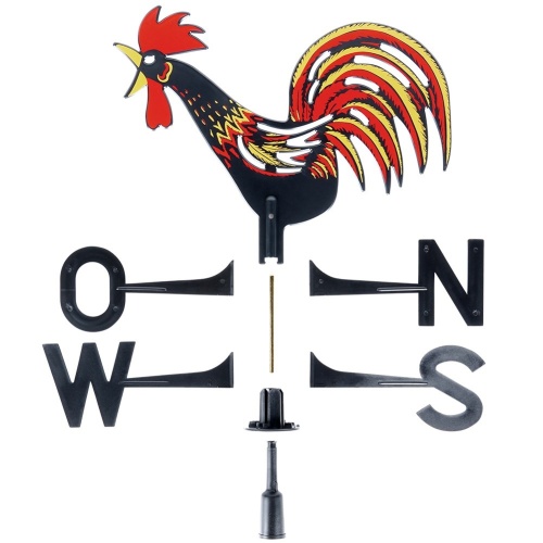 - Wiatrowskaz w kształcie koguta - Róża wiatrów w kształcie koguta. Kierunek wiatru wskazywany jest przez dziób koguta. Kogut ma wymiary 40 x 40 x 41 cm.