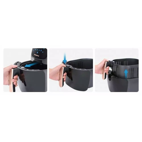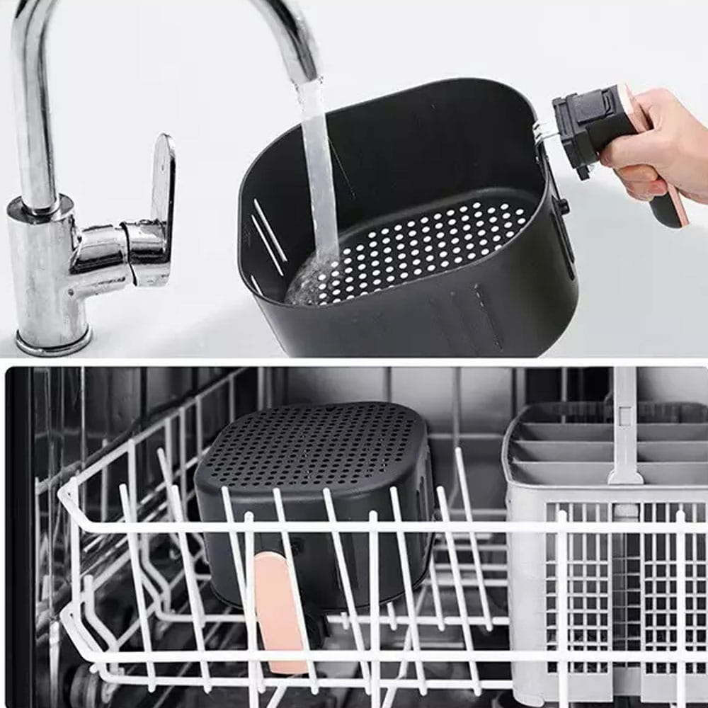 - Łatwy w użytkowaniu: wkładanie kosza do frytkownicy i wyciąganie go jest bardzo proste, dzięki wyjmowanej gumowej zatyczce.