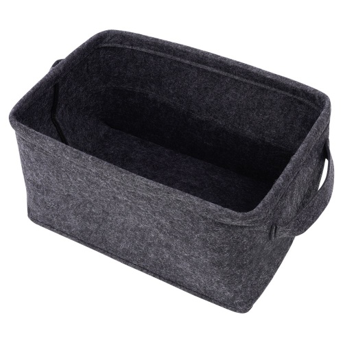 Koszyk do przechowywania w całości wykonany z filcu w czarnym kolorze. Posiada dwa uchwyty, które zapewnią wygodne korzystanie. Możliwość złożenia na płasko.