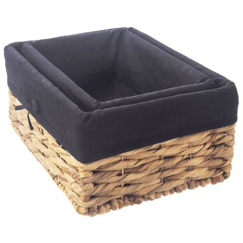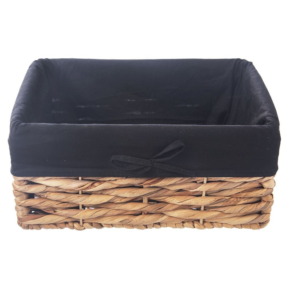 - RĘCZNIE ROBIONY - Koszyk do przechowywania o wymiarach 30 x 20 x 14 cm. Wykonany ręcznie z zaplecionego hiacyntu wodnego na metalowej konstrukcji. Kosz posiada materiałową wyściółkę w modnym, czarnym kolorze.