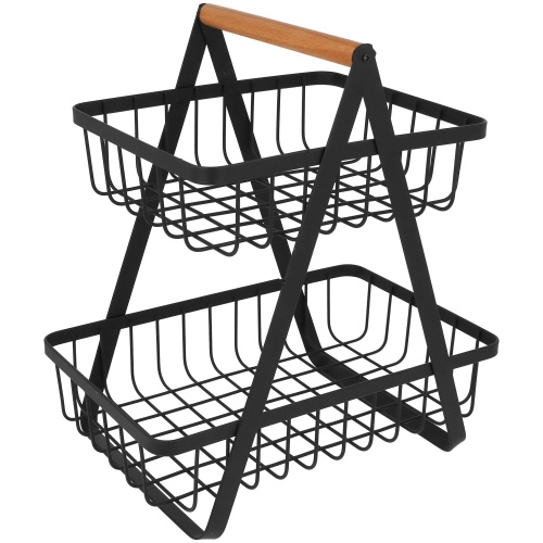 - Dwupoziomowy design: Koszyk posiada dwa poziomy, umożliwiając przechowywanie większej ilości owoców i warzyw na ograniczonej przestrzeni.
