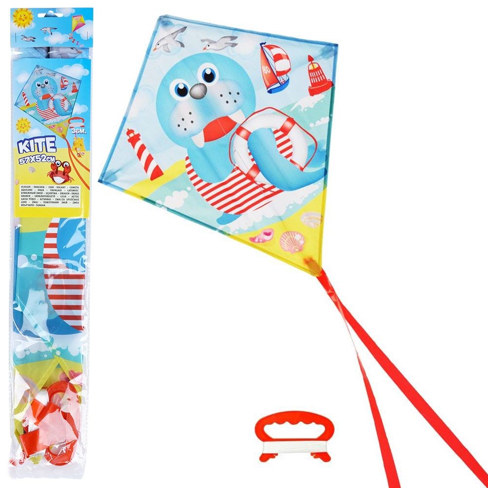 Latawiec z motywem lwa morskiego. Żywe kolory latawca sprawią, że będzie pięknie prezentował się na niebie. Dodatkowo posiada wstążki, które powiewają na wietrze. Latawiec jest lekki, posiada wygodny uchwyt, który zapewni odpowiednie manewrowanie latawcem. Zabawa latawcem to świetny sposób na spędzenie czasu zarówno dla dzieci jak i dorosłych. Wyprodukowano zgodnie z europejskimi standardami.