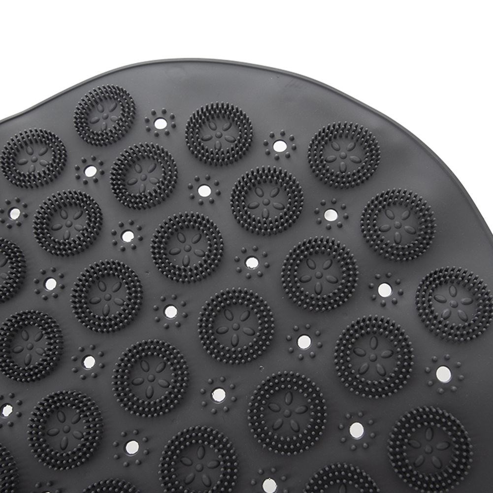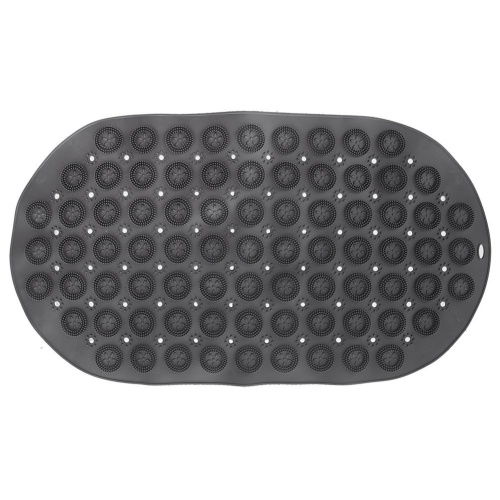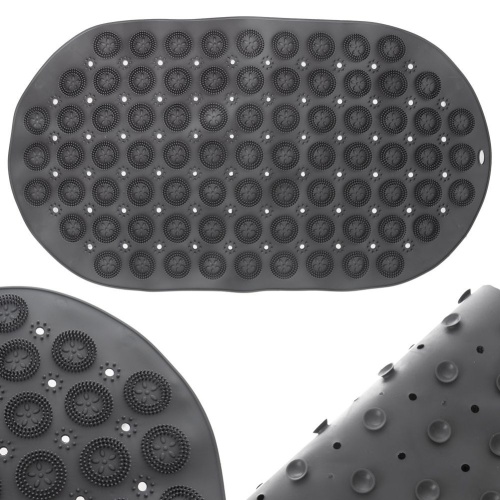 - ANTYPOŚLIZGOWA - Łazienkowa mata antypoślizgowa z wypustkami masującymi. Mata ma owalny kształt o wymiarach 68 x 37 cm. Sprawdzi się pod prysznicem, w brodziku lub wannie. Mocno przylega za pomocą przyssawek.