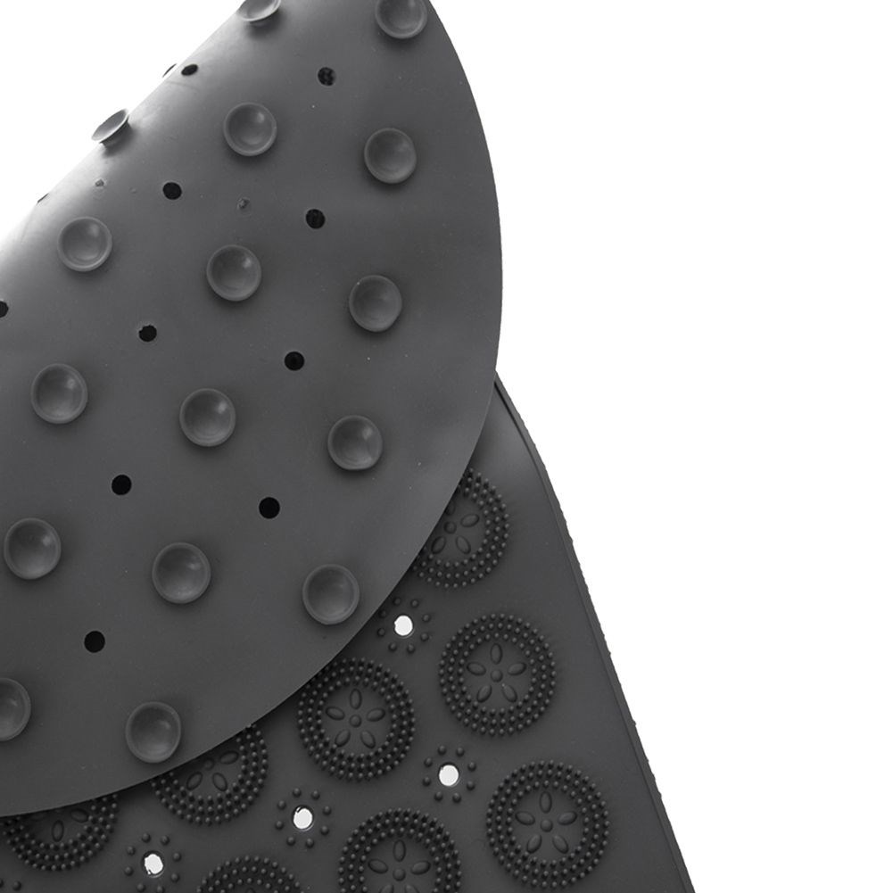 - WYTRZYMAŁA - Wykonana z wysokiej jakości tworzywa w grafitowym kolorze, które jest odporne na wilgoć i wodę. Mata posiada wypustki masujące, dzięki czemu stopy będą delikatnie masowane podczas korzystania z maty. Grafitowy kolor maty sprawia że wkomponuje się w wystrój każdej łazienki.