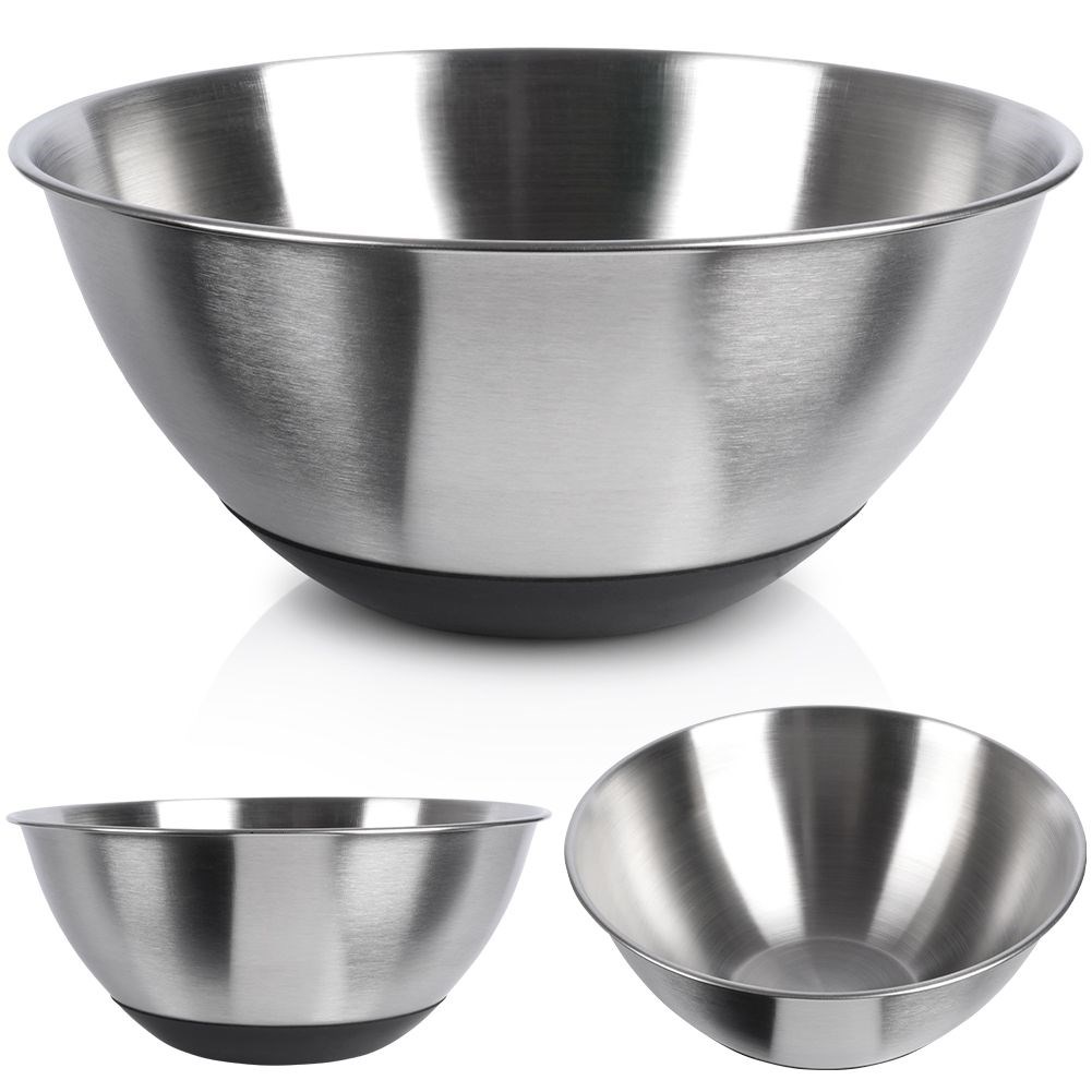 Antypoślizgowa miska kuchenna wykonana w całości ze stali nierdzewnej. Niezwykle uniwersalne zastosowanie sprawi, że będzie często używana. Przydatna w każdym domu, zarówno podczas codziennego gotowania, jak i wyjątkowych okazji. Prosty i klasyczny kształt sprawi, że efektownie prezentuje się na stole. Miskę możemy przechowywać w lodówce. Jest też świetnym pomysłem na prezent dla bliskich np. z okazji parapetówki. Wyprodukowano zgodnie z europejskimi standardami.