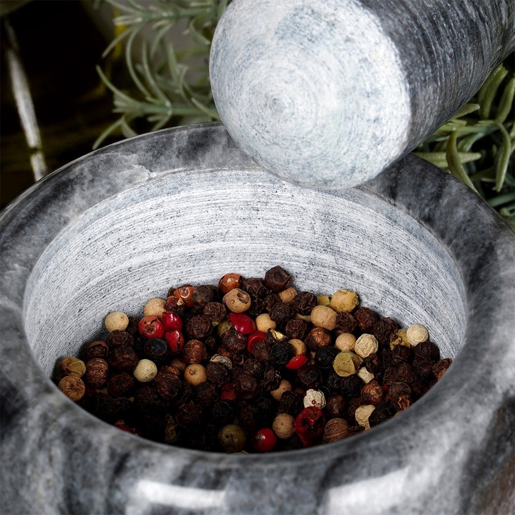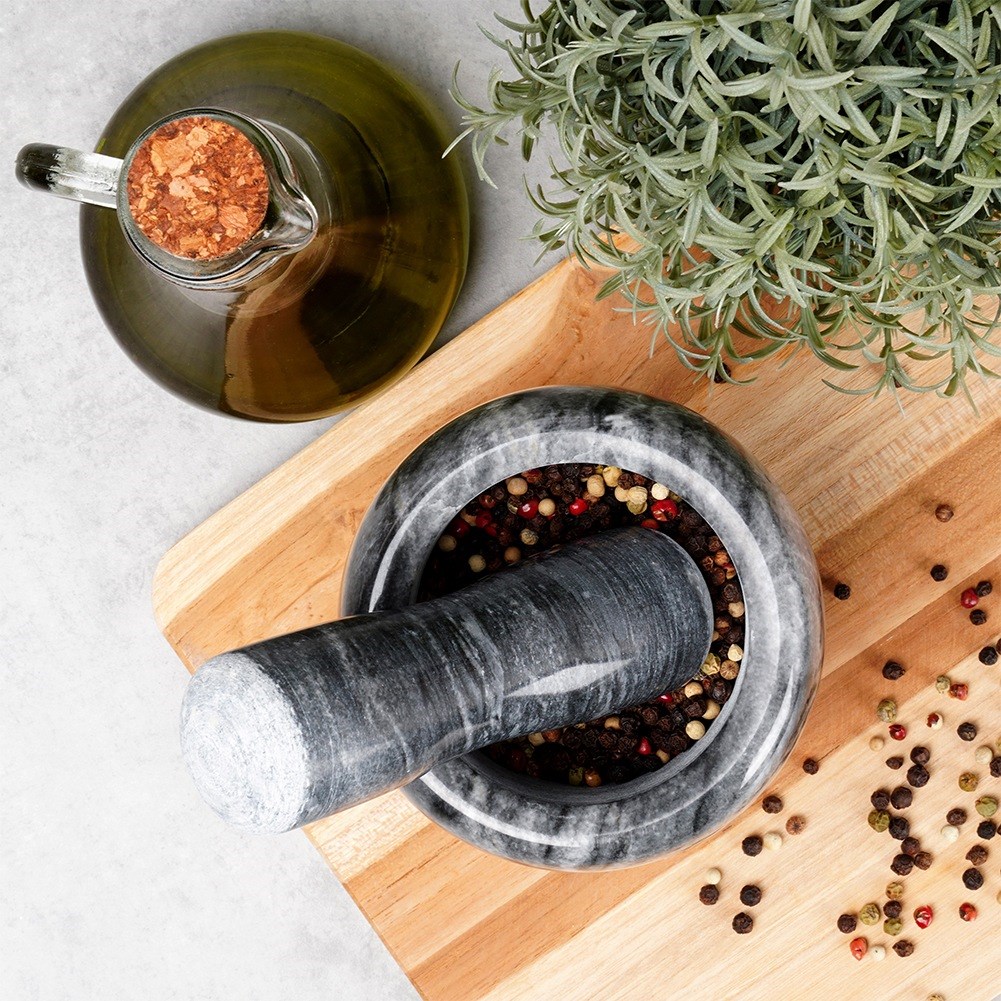 - PRAKTYCZNY - Moździerz jest niezbędny w każdej kuchni, idealny dla osób ceniących jakość przypraw. Dzięki niemu ucierane składniki uwolnią wyjątkowy smak.