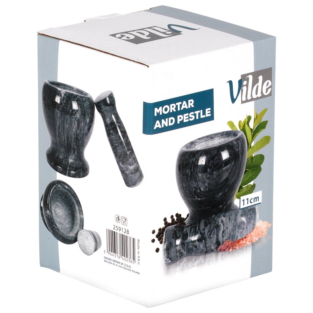 Moździerz z tłuczkiem wykonany z najwyższej jakości materiałów. Wyjątkowo przydatny w kuchni podczas ucierania przypraw, nasion, ziół i orzechów. Dzięki swojej solidnej konstrukcji będzie niezbędnym narzędziem w Twojej kuchni. Moździerz wykonany jest z naturalnego granitu, poszczególne egzemplarze mogą się od siebie różnić strukturą i ubarwieniem. Oryginalny produkt marki Vilde. Wyprodukowano zgodnie z europejskimi standardami.