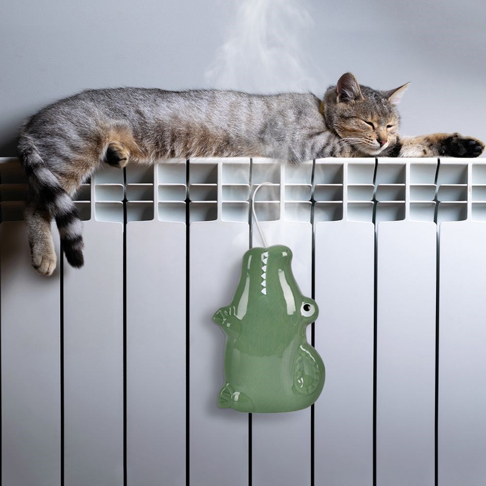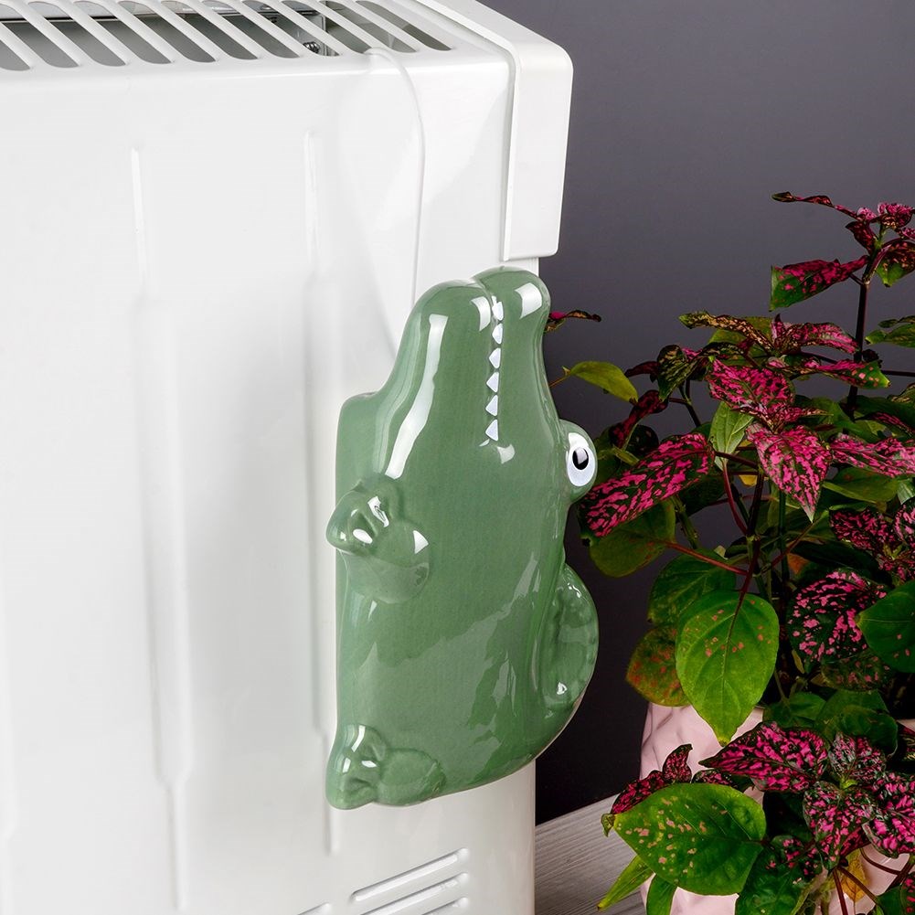 Ceramiczny nawilżacz powietrza w kształcie uroczego zwierzaka - krokodyla. Zawieszany za pomocą haczyka na kaloryferze. Idealny do pokoju dziecięcego.