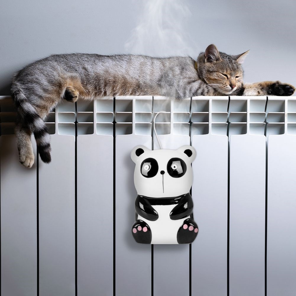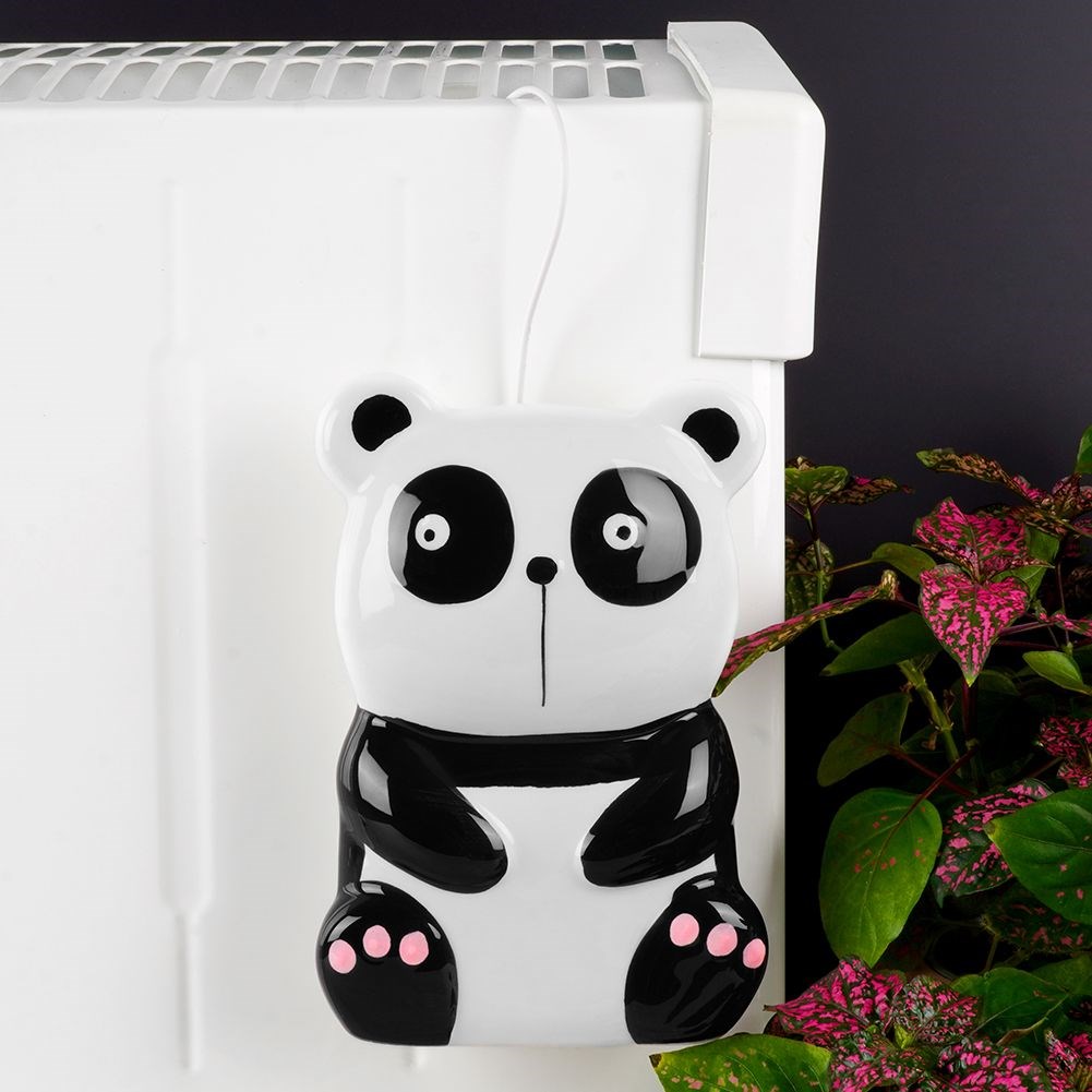 Ceramiczny nawilżacz powietrza w kształcie uroczego zwierzaka - pandy. Zawieszany za pomocą haczyka na kaloryferze. Idealny do pokoju dziecięcego.