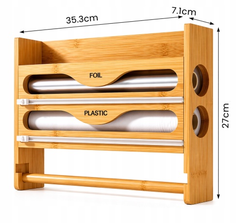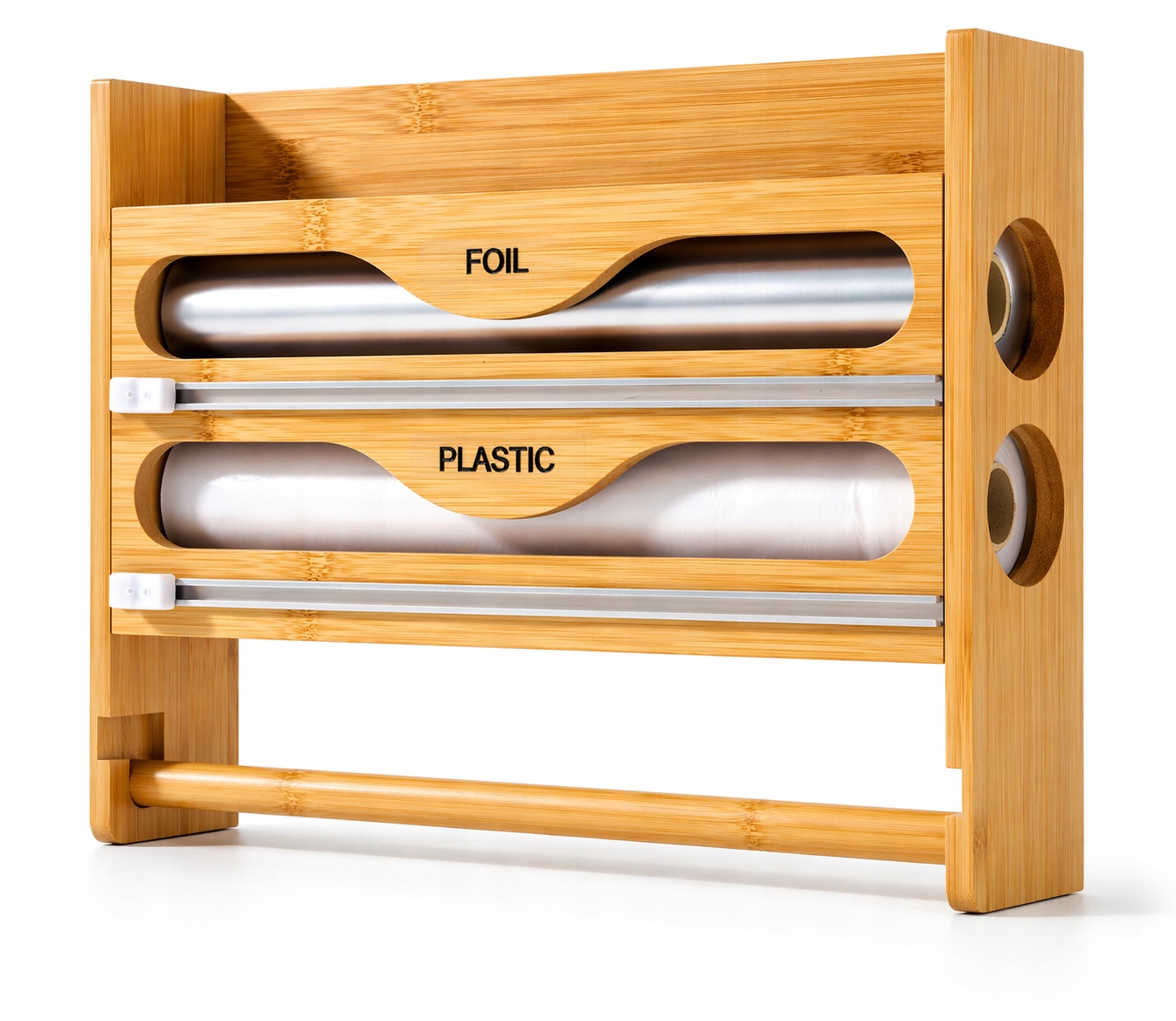 ORGANIZER KUCHENNY 4W1 BAMBUSOWY - Uchwyt na ręcznik, folie i przyprawy